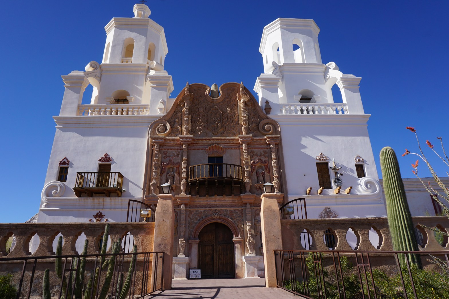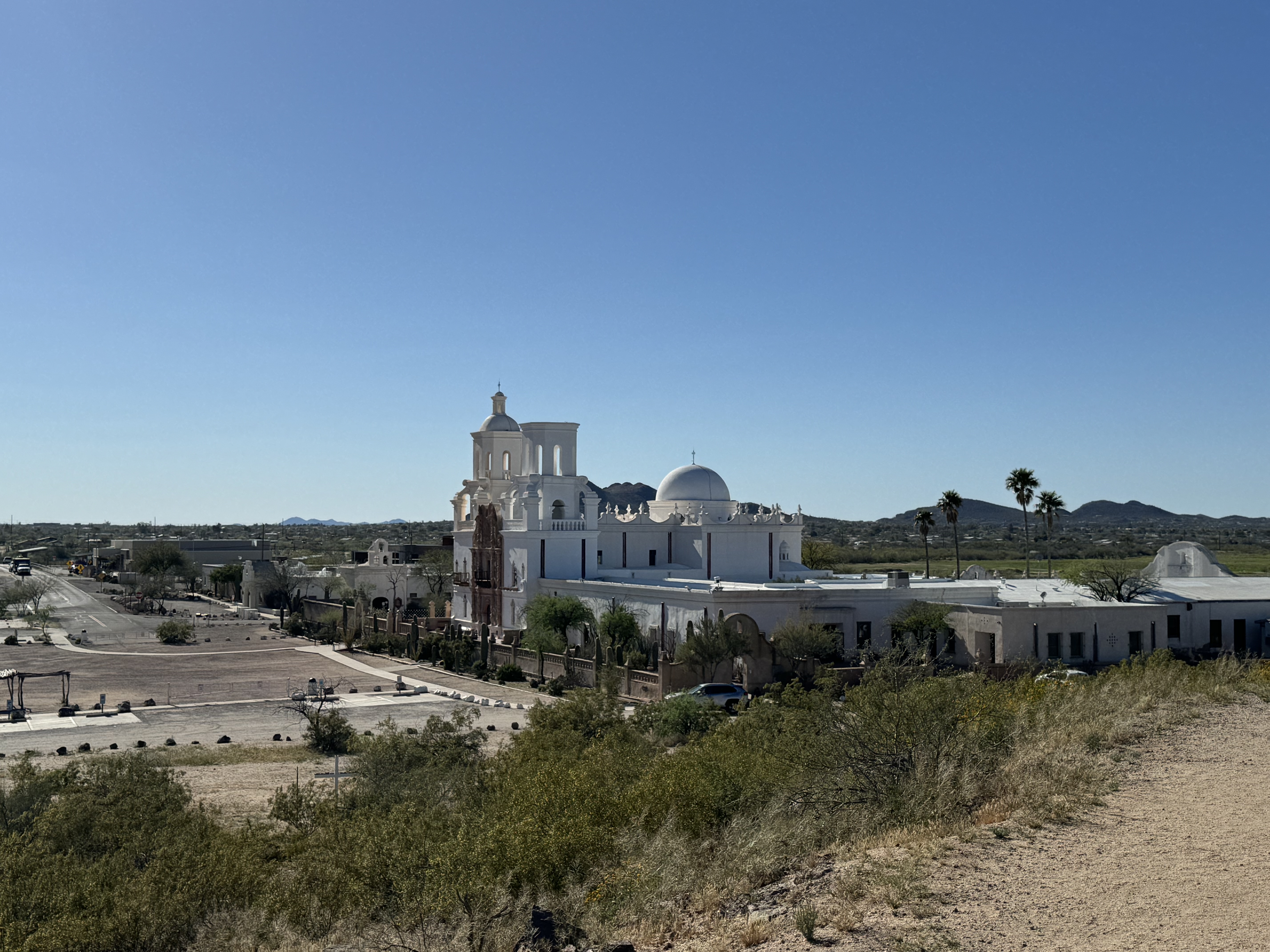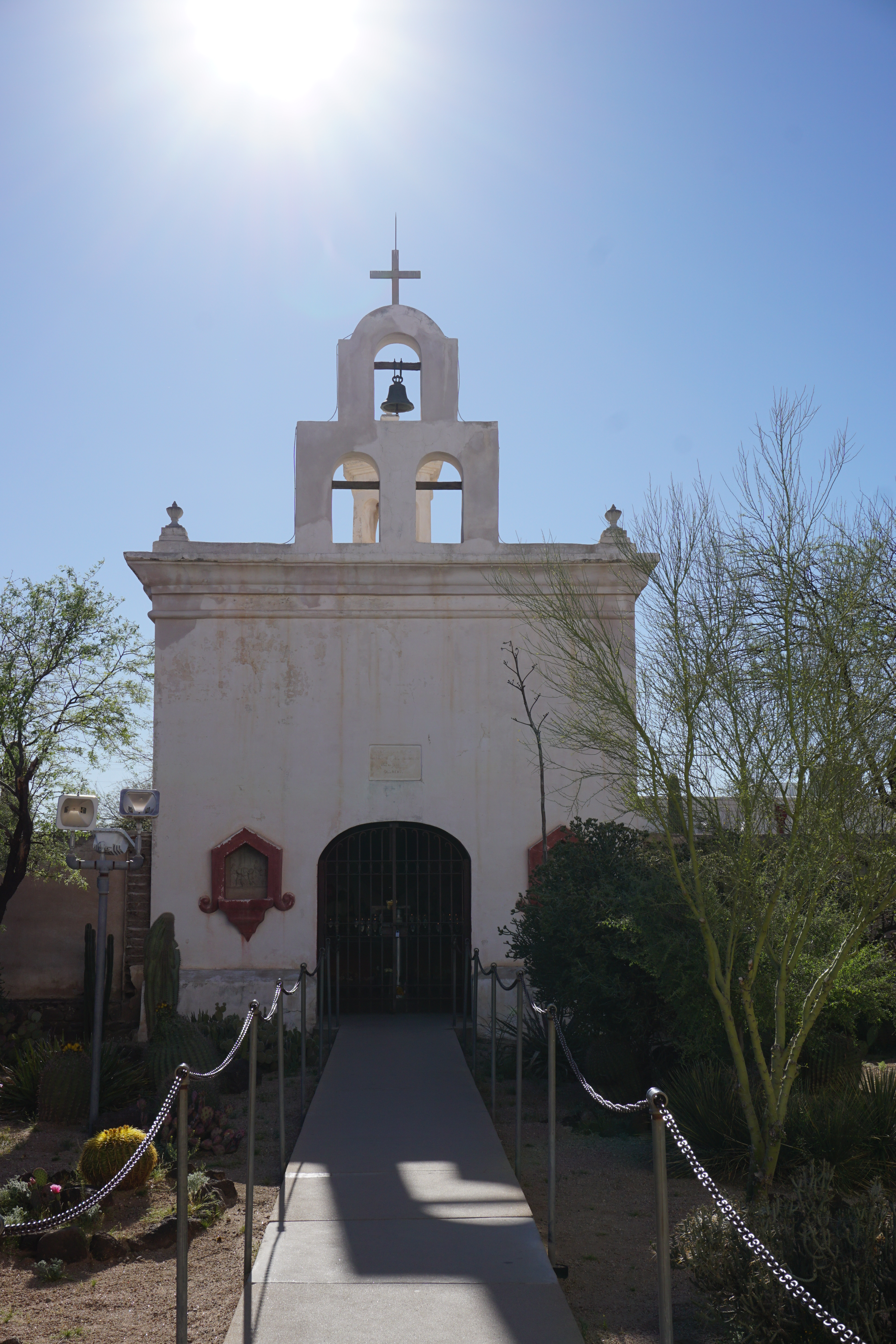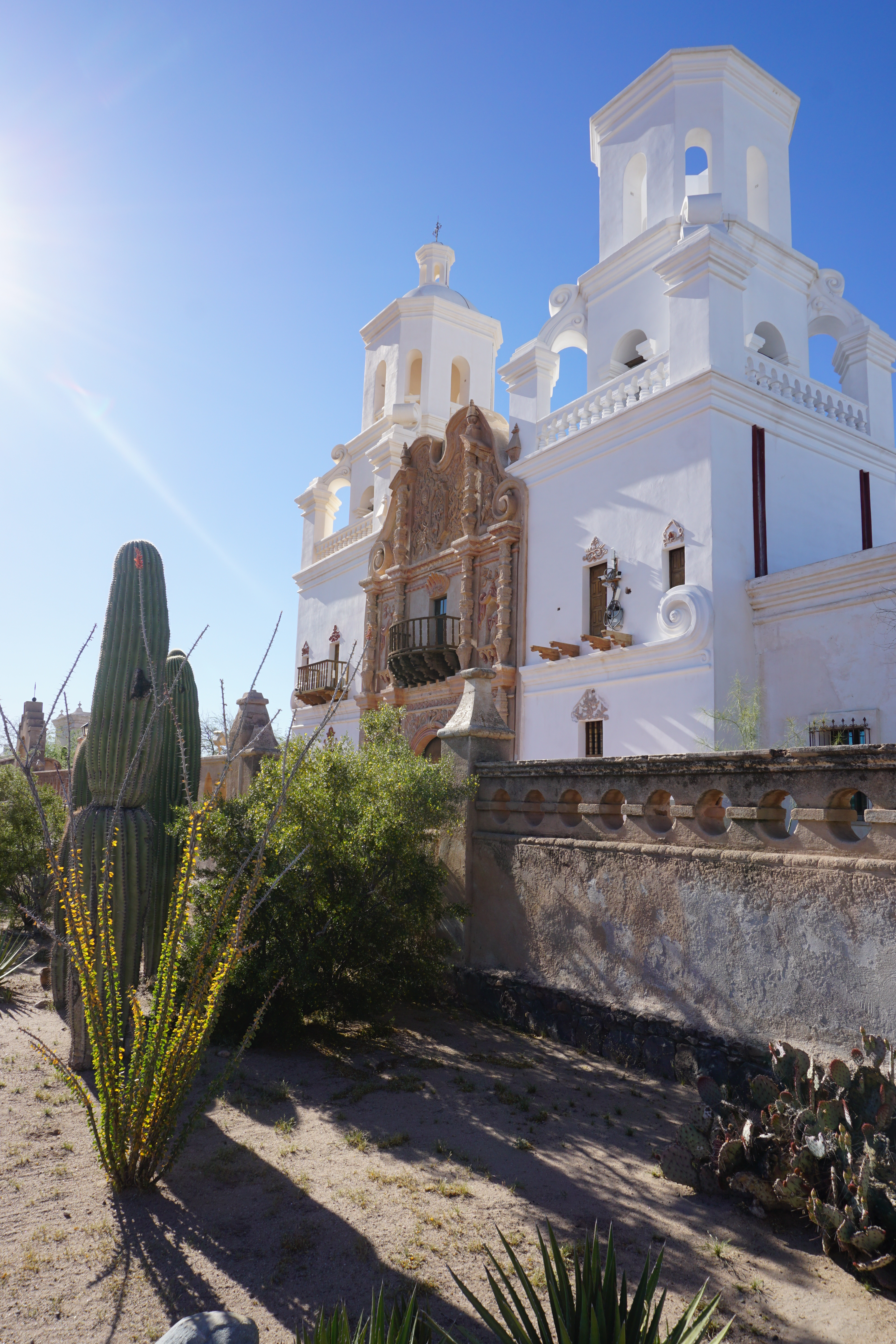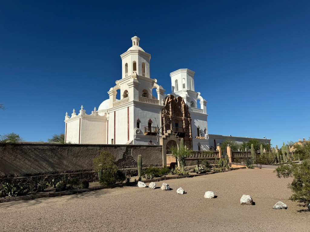 It is a striking building, dubbed the “white dove in the desert” . We could see it from a few miles away, and I can understand the nickname. We arrived and walked around the grounds and shot some photos, unfortunately tours were not available that day of the week so we were not able to go inside, but there are virtual tours available online!