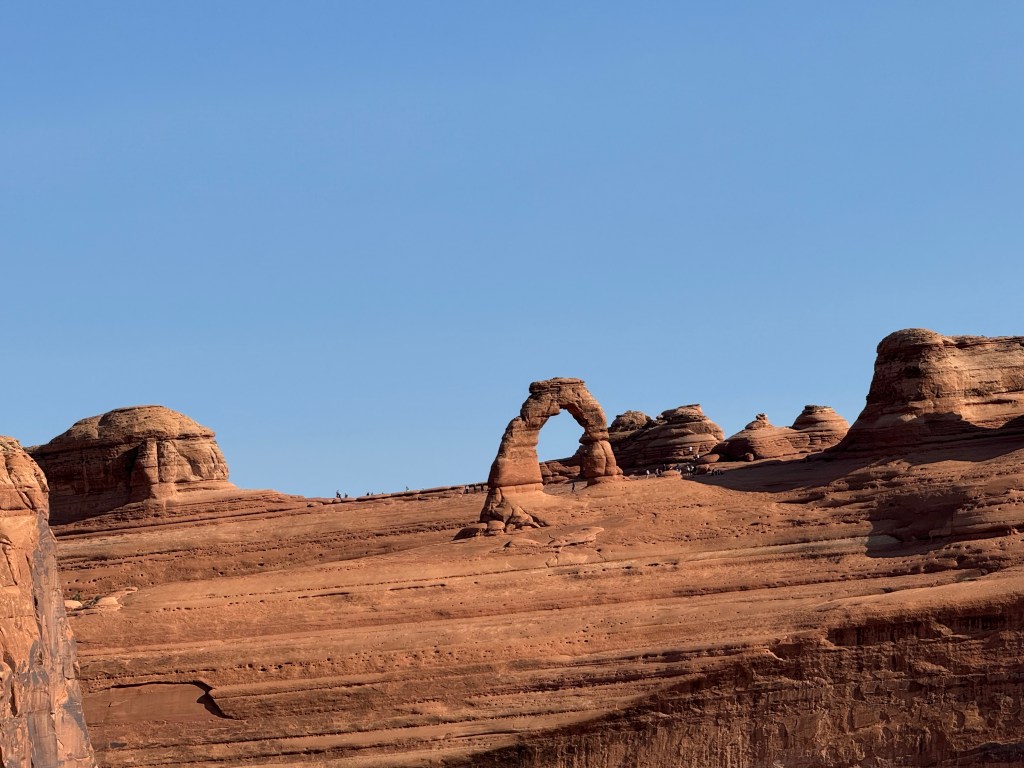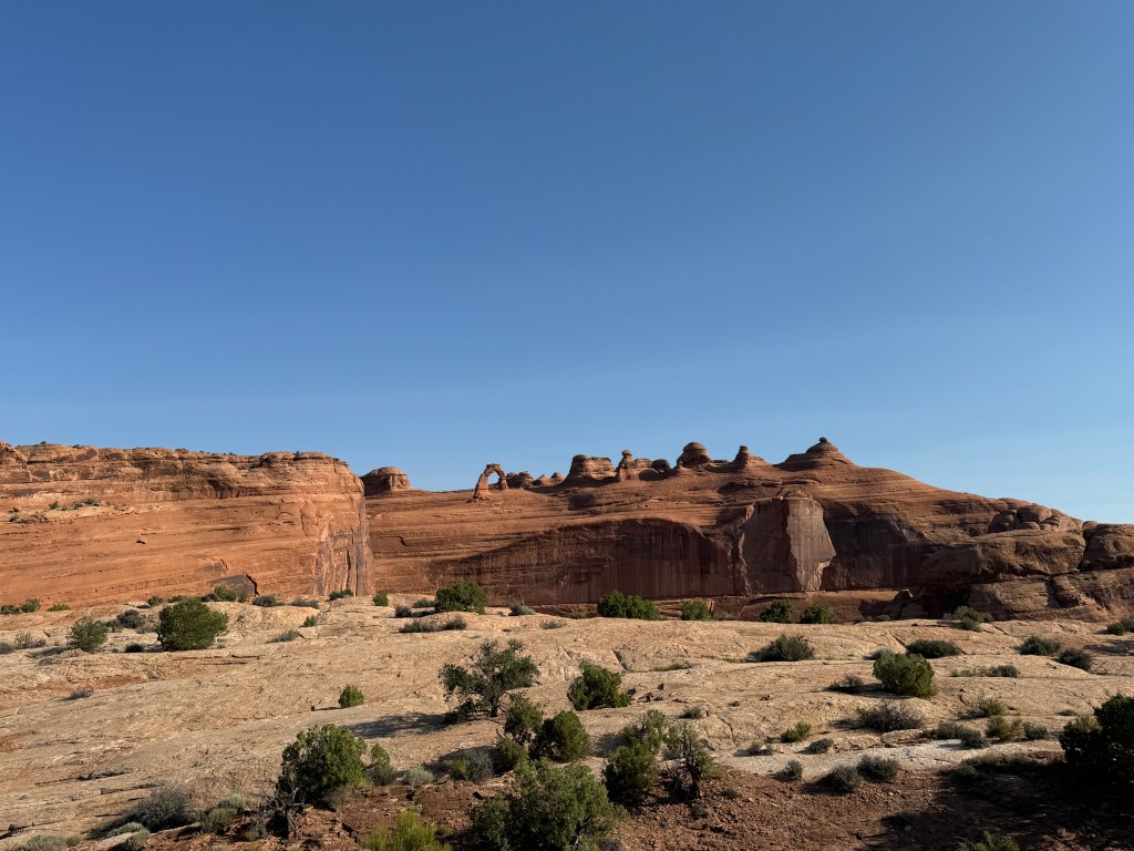We were able to spot many more of the natural features with the help of our handy map on the way to the Delicate Arch Viewpoint Trail. We double timed it up the trail (to us this was low altitude!) to view the arch. You could see tons of people who hit the trails bright and early to make the hike all the way to Delicate Arch, with the heat here an early start seems the smart move!