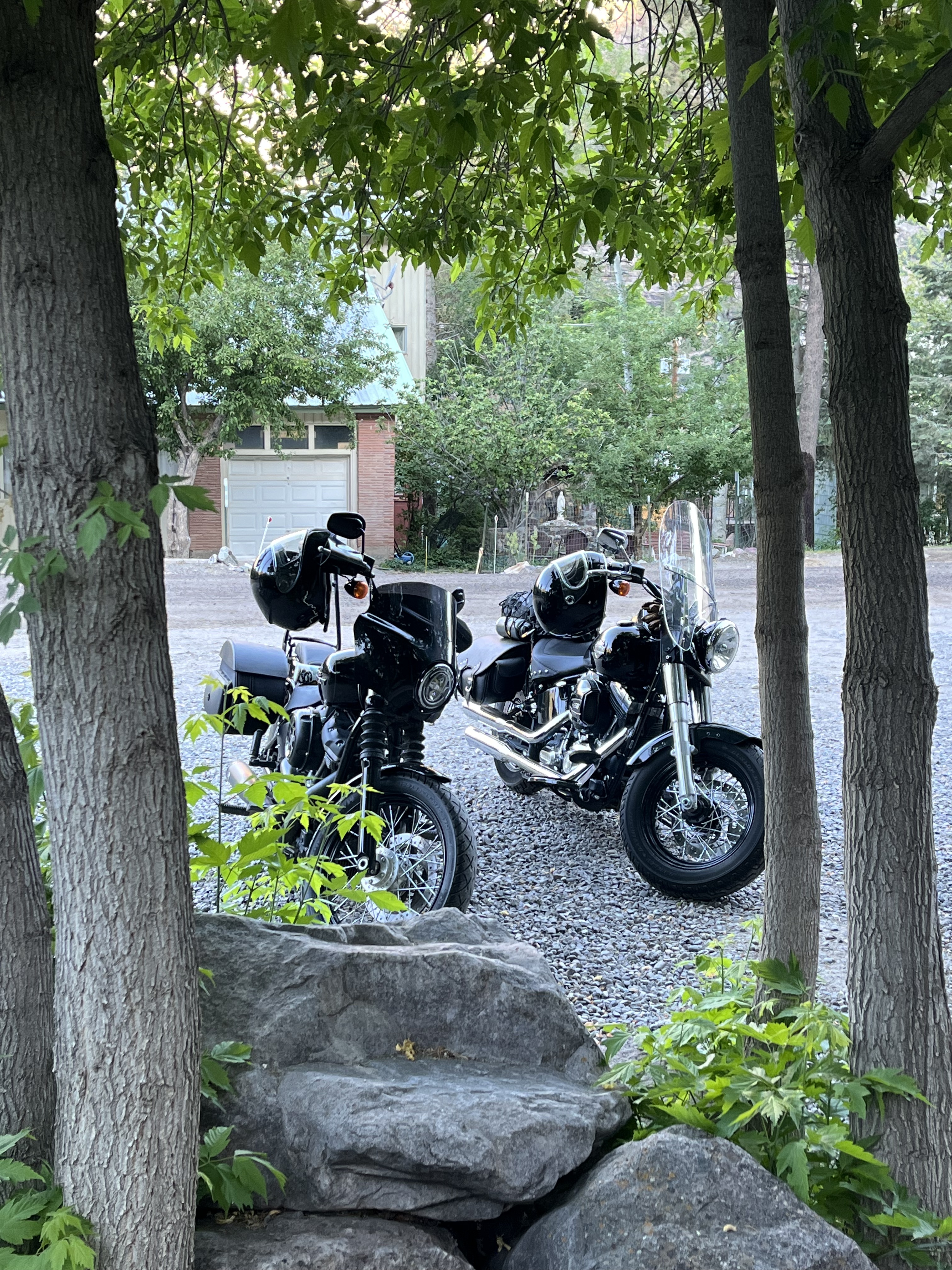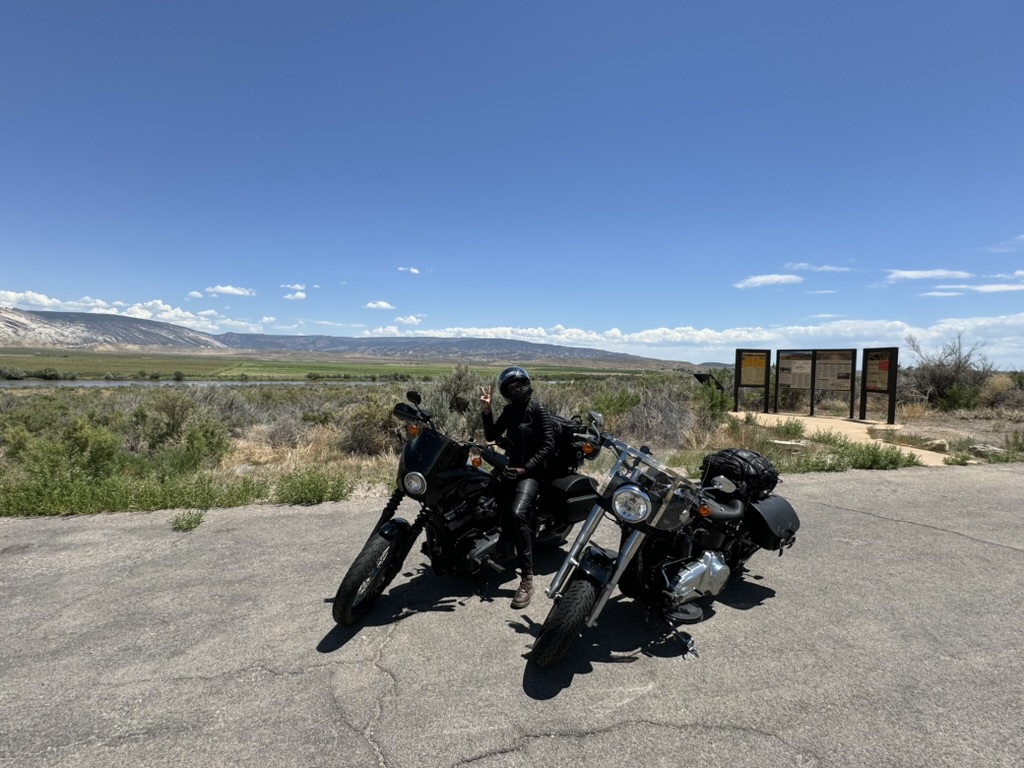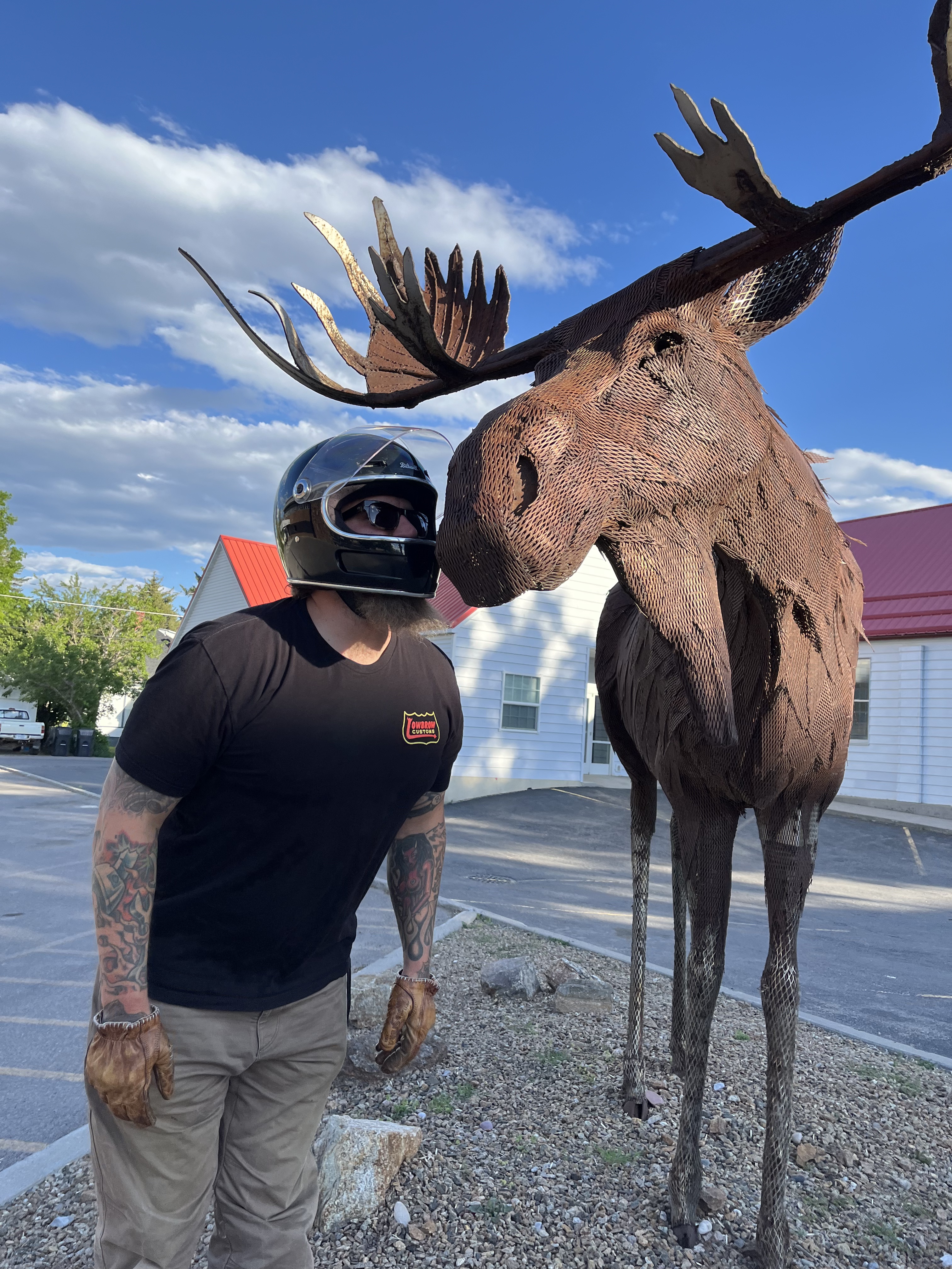 Our third morning started with a surprise view of a hot air balloon over our hotel! We wanted to avoid Salt Lake City and the traffic around it so we chose to take the 89 out of Utah and it criss crossed state lines so our route today was UT-WY-UT-WY-ID-WY-ID-MT. We stopped at Yankee Doodle’s Cafe in Wyoming to check the weather and consider our route. We checked the conditions and there was a flash flood warning further on up the road we were currently on, then we checked the radar but it didn’t look ominous so we decided to try to keep heading northwest to Montana. We were aiming for Lolo to visit my family but still had one more night before we needed to get there. If the weather was bad we were going to stop in Idaho Falls but we were able to keep pushing forward and didn’t hit any bad weather. Stopping in Dillon MT for the night meant that the next day to Lolo was going to be a short ride and we wouldn’t show up exhausted.