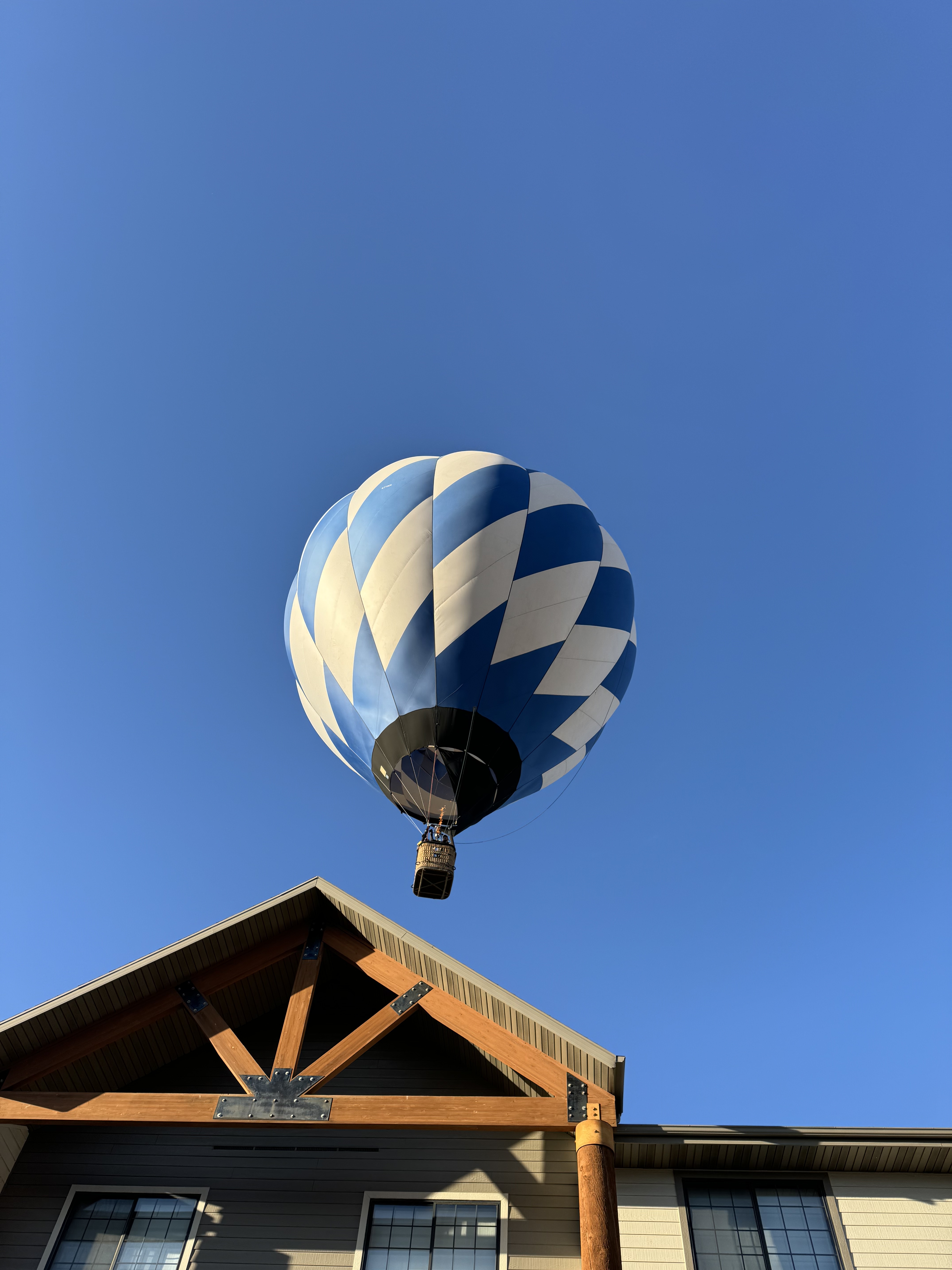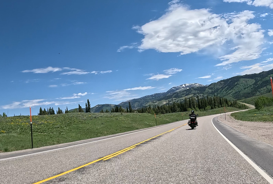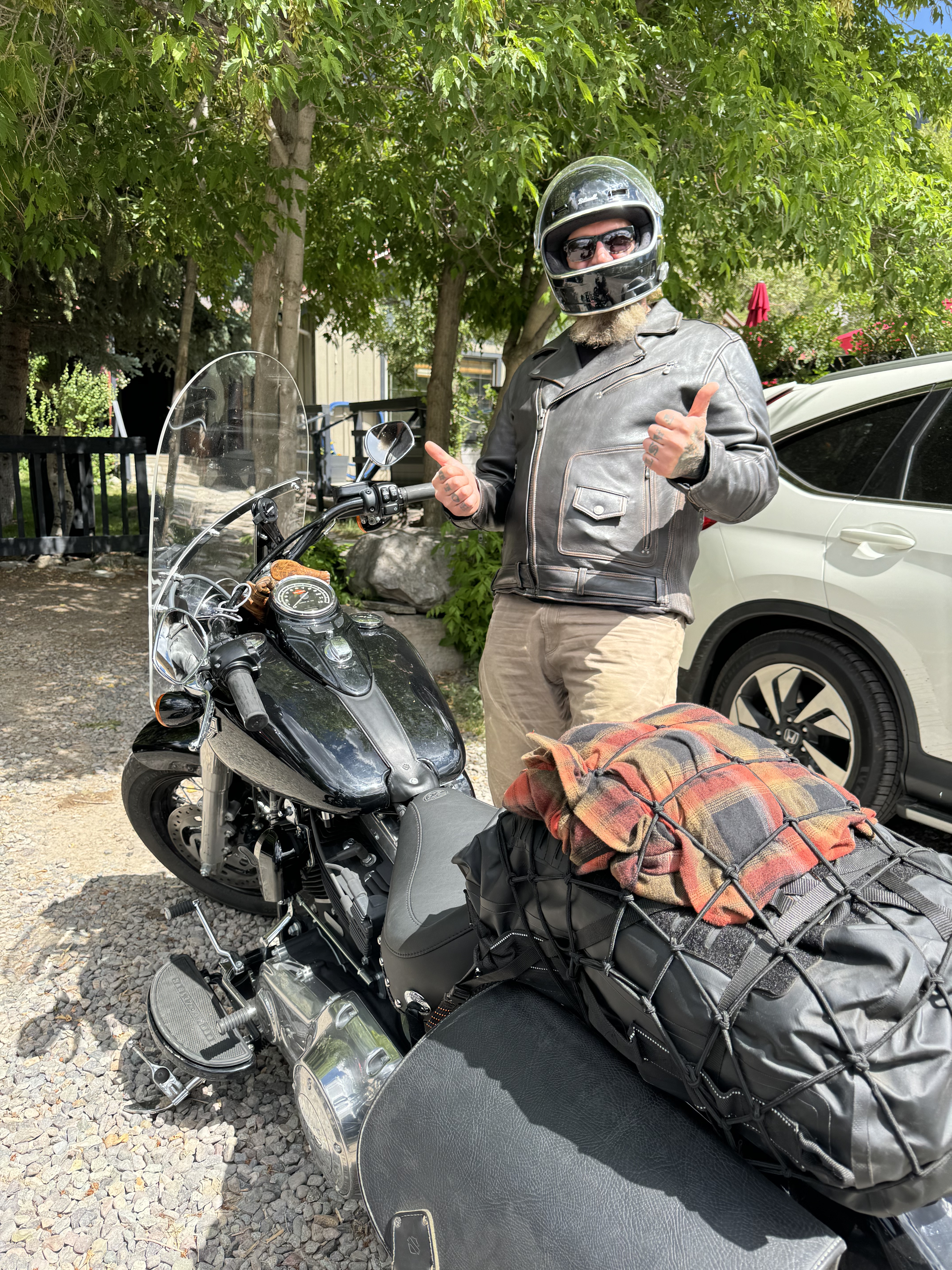 Our third morning started with a surprise view of a hot air balloon over our hotel! We wanted to avoid Salt Lake City and the traffic around it so we chose to take the 89 out of Utah and it criss crossed state lines so our route today was UT-WY-UT-WY-ID-WY-ID-MT. We stopped at Yankee Doodle’s Cafe in Wyoming to check the weather and consider our route. We checked the conditions and there was a flash flood warning further on up the road we were currently on, then we checked the radar but it didn’t look ominous so we decided to try to keep heading northwest to Montana. We were aiming for Lolo to visit my family but still had one more night before we needed to get there. If the weather was bad we were going to stop in Idaho Falls but we were able to keep pushing forward and didn’t hit any bad weather. Stopping in Dillon MT for the night meant that the next day to Lolo was going to be a short ride and we wouldn’t show up exhausted.