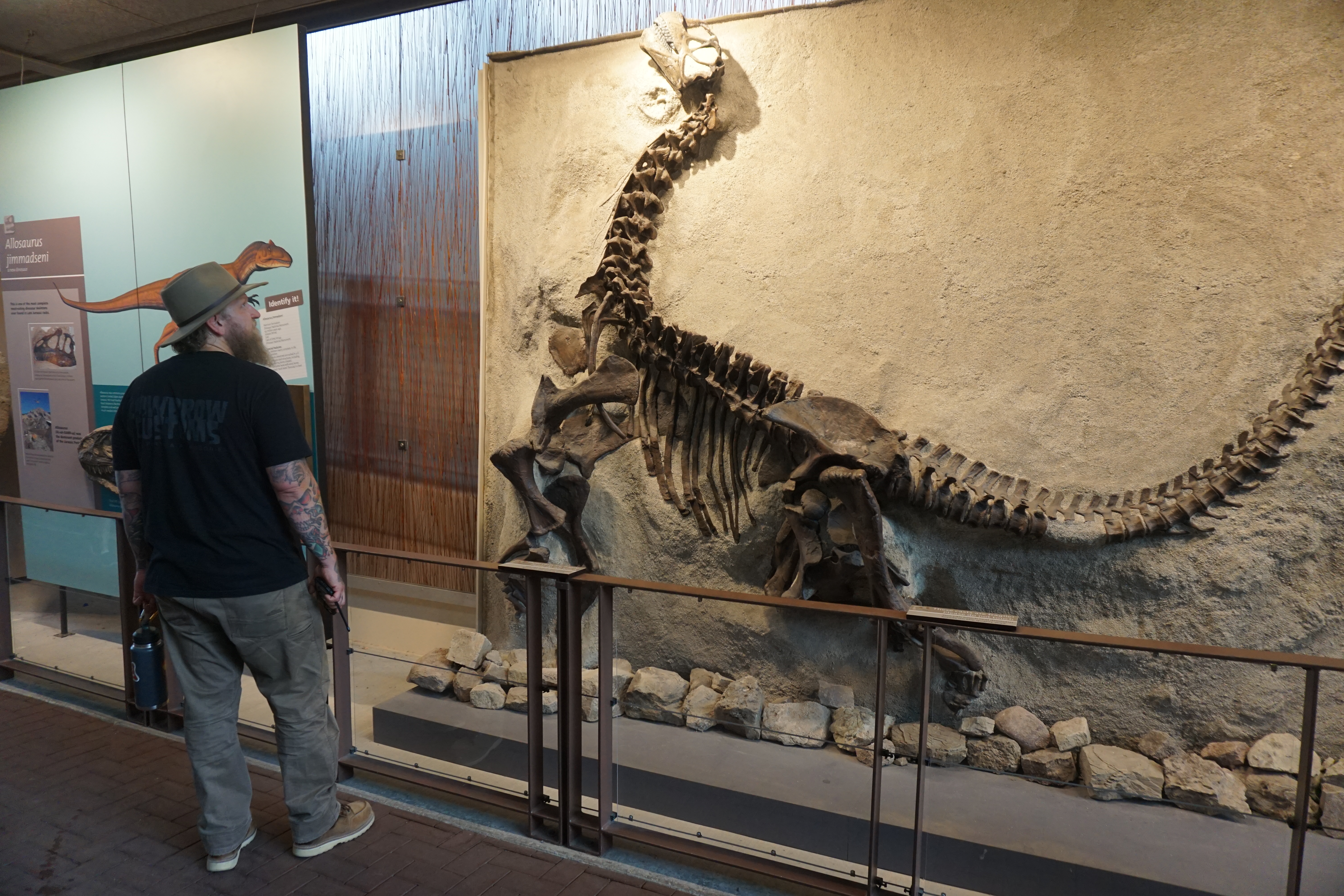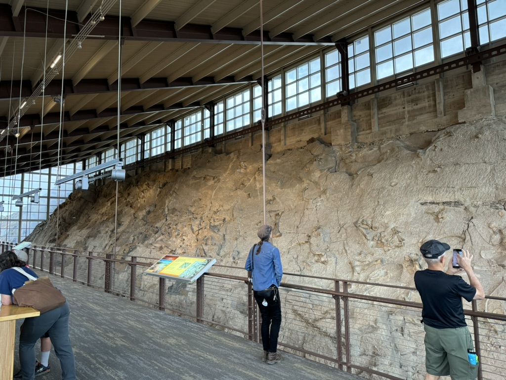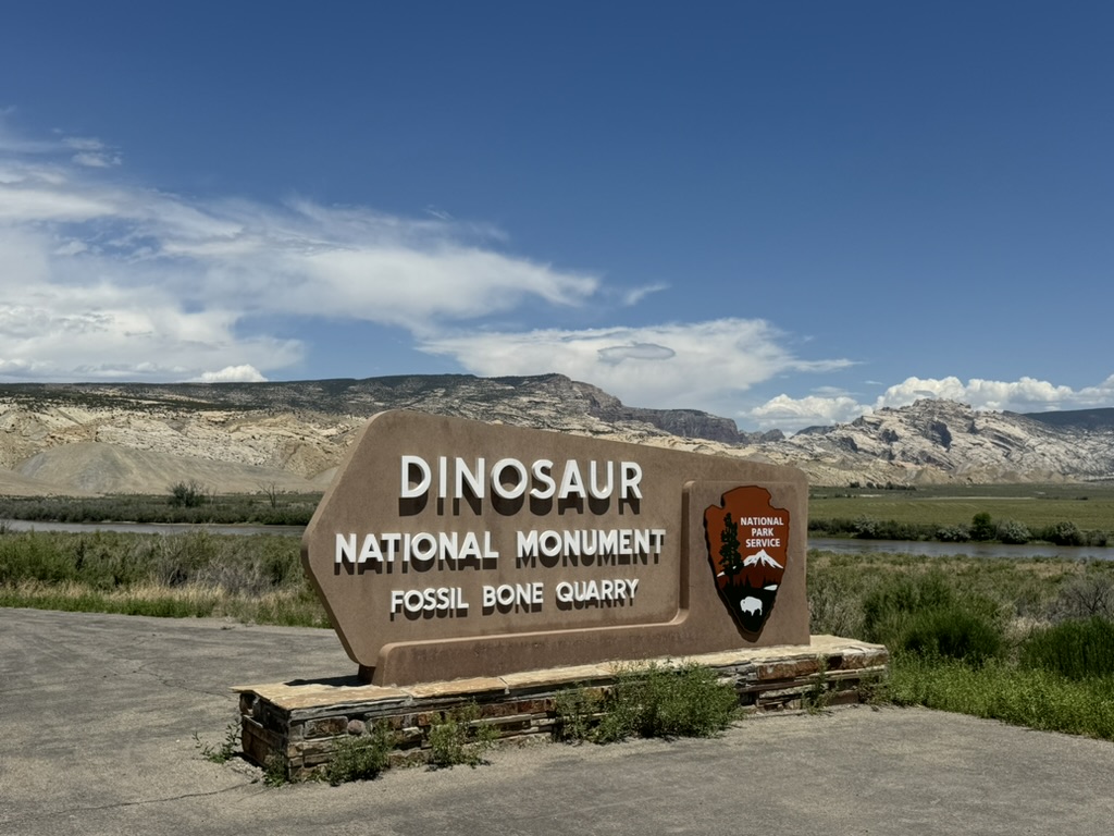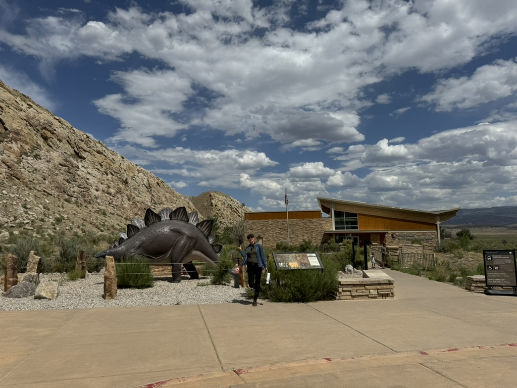 Day 2 was the start of what was going to be a long hot day. We were coming out of the Colorado mountains now and started to hit the desert. We crossed our first state line of the trip and made a quick detour to Dinosaur National Monument in Utah. I had never been but Kyle has and knew where he could take a dip in the river. I was impressed by the dramatic landscape as we rode closer to the river. Afterwards we took the shuttle from the visitors center up to the Quarry Exhibit Hall. The building is built around an area of exposed rock that holds over 1,500 dinosaur bones as well as other exhibits and information on the excavation and the surrounding area.