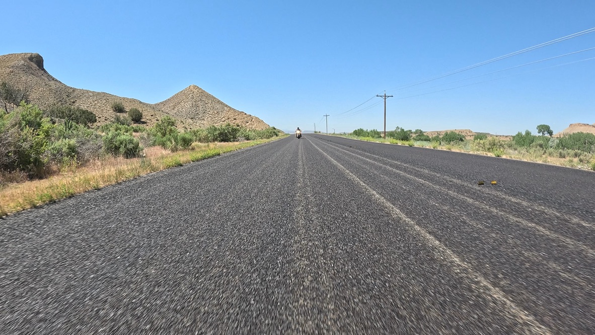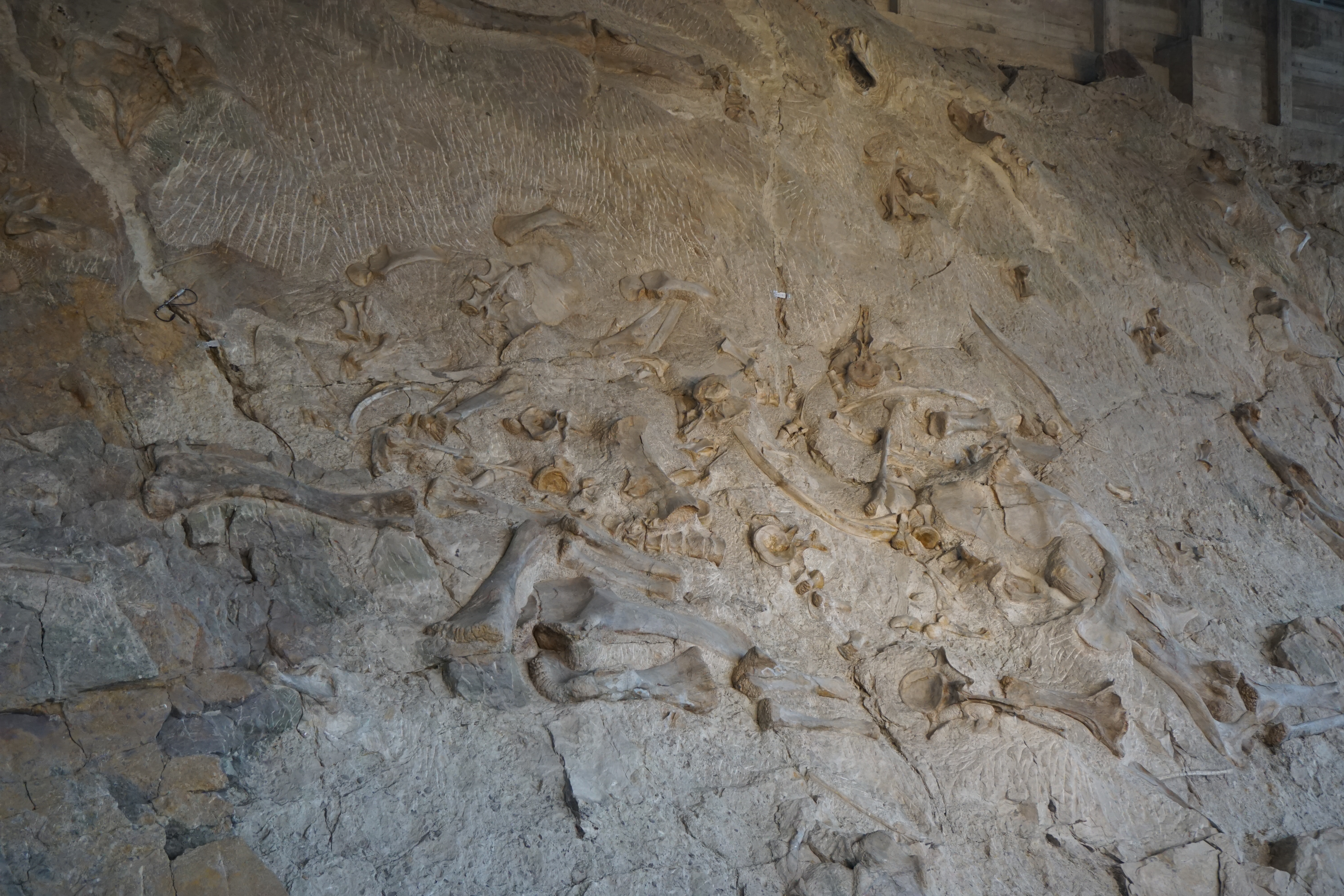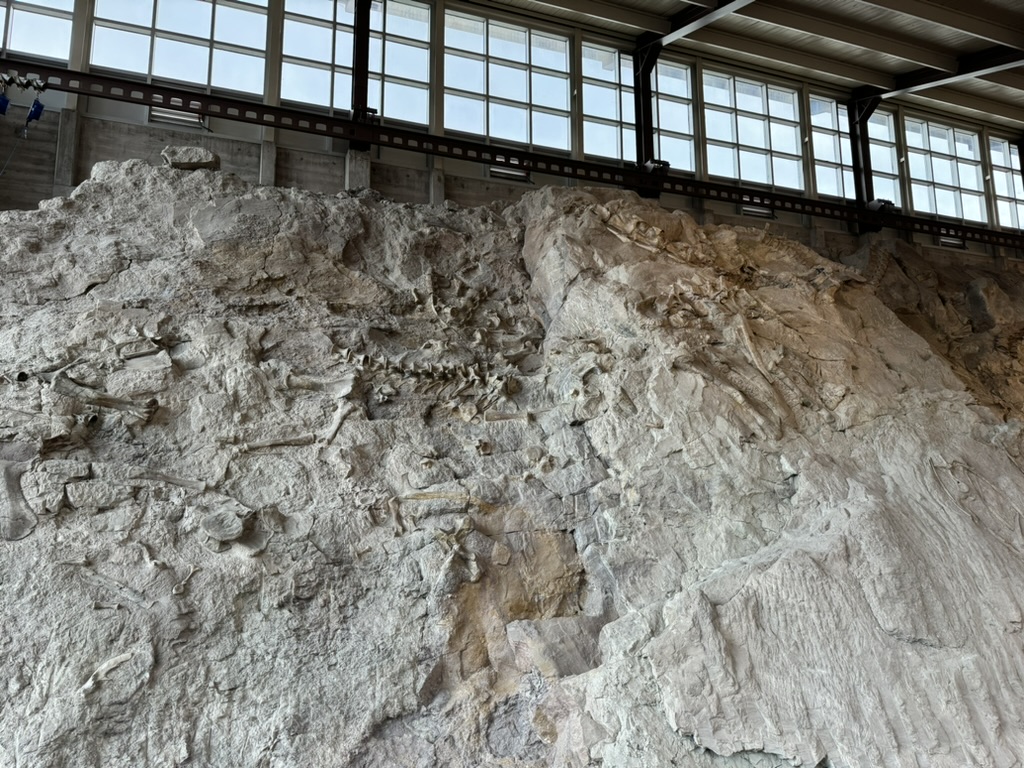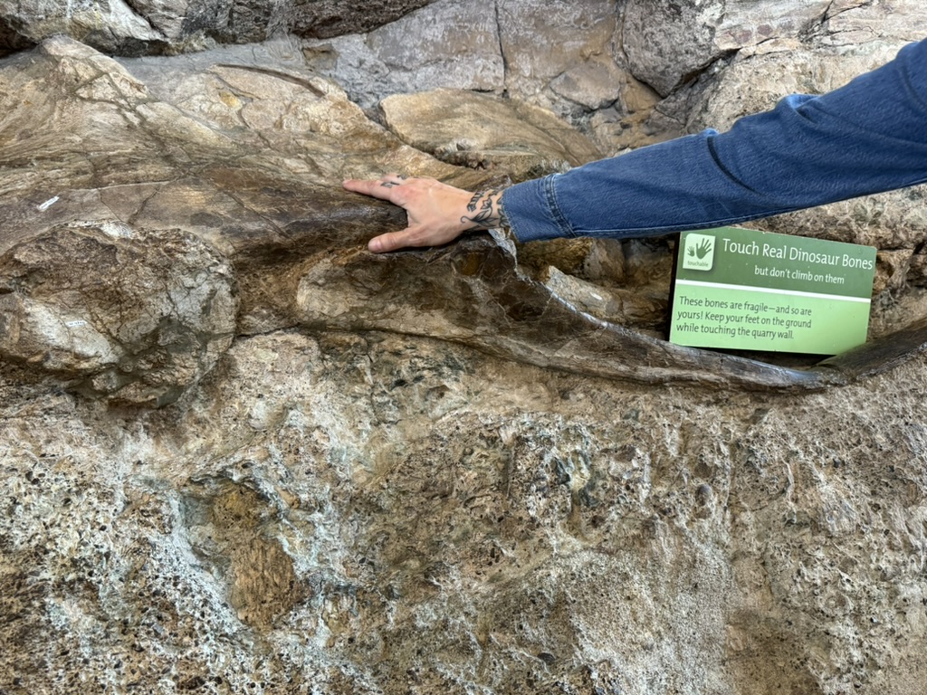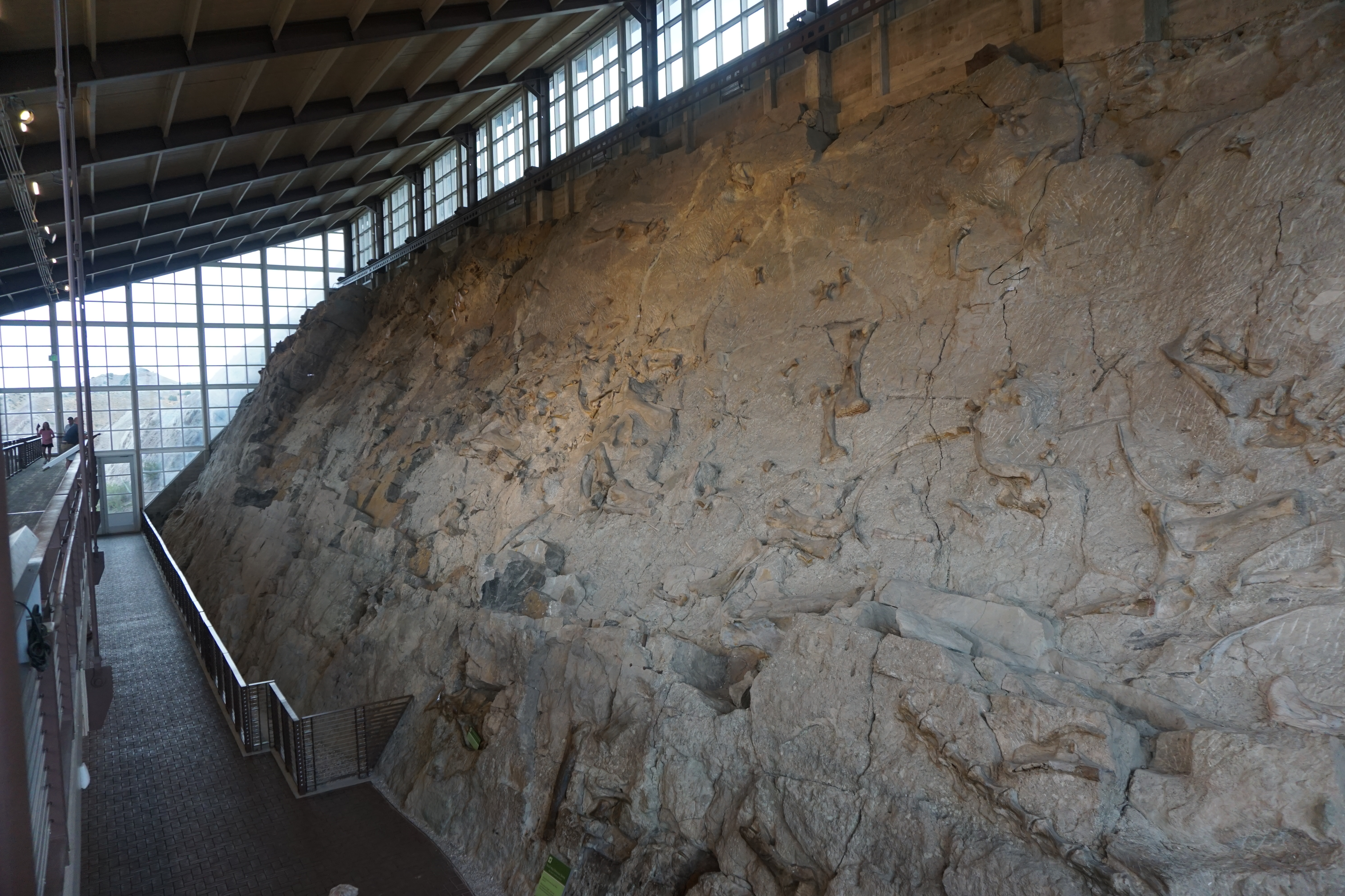 Day 2 was the start of what was going to be a long hot day. We were coming out of the Colorado mountains now and started to hit the desert. We crossed our first state line of the trip and made a quick detour to Dinosaur National Monument in Utah. I had never been but Kyle has and knew where he could take a dip in the river. I was impressed by the dramatic landscape as we rode closer to the river. Afterwards we took the shuttle from the visitors center up to the Quarry Exhibit Hall. The building is built around an area of exposed rock that holds over 1,500 dinosaur bones as well as other exhibits and information on the excavation and the surrounding area.