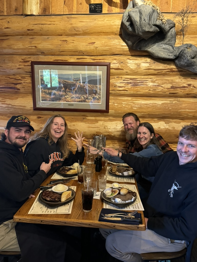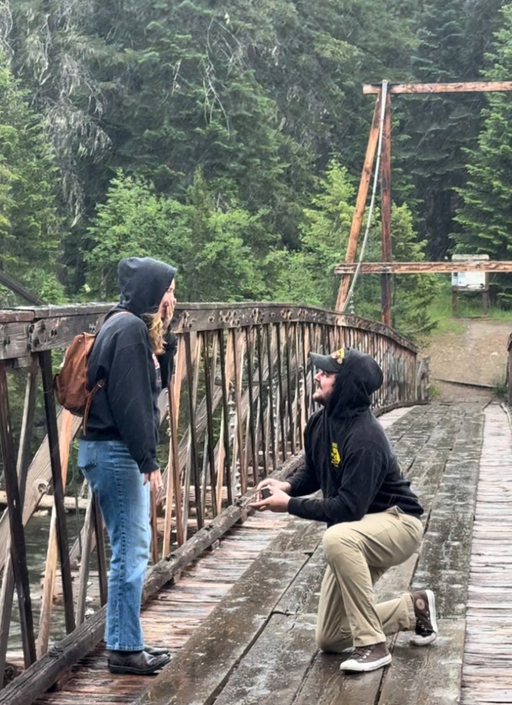 Our first full day together with the family started off gray and chilly so we opted to jump in Cynthia’s truck and be chauffeured around. As we drove towards our first destination the rain started and we were glad we decided to stick with 4 wheels instead of 2 today. We drove an hour and a half in to Idaho where Ethan proposed to Cynthia on a bridge over the Lochsa River. We planned on hiking to Jerry Johnson hot springs from there but it was fully raining at this point. The proposal went ahead as planned but the hike did not, so we opted for a dip in the Lolo Hot Springs before a celebratory dinner at the Lolo Creek Steakhouse.