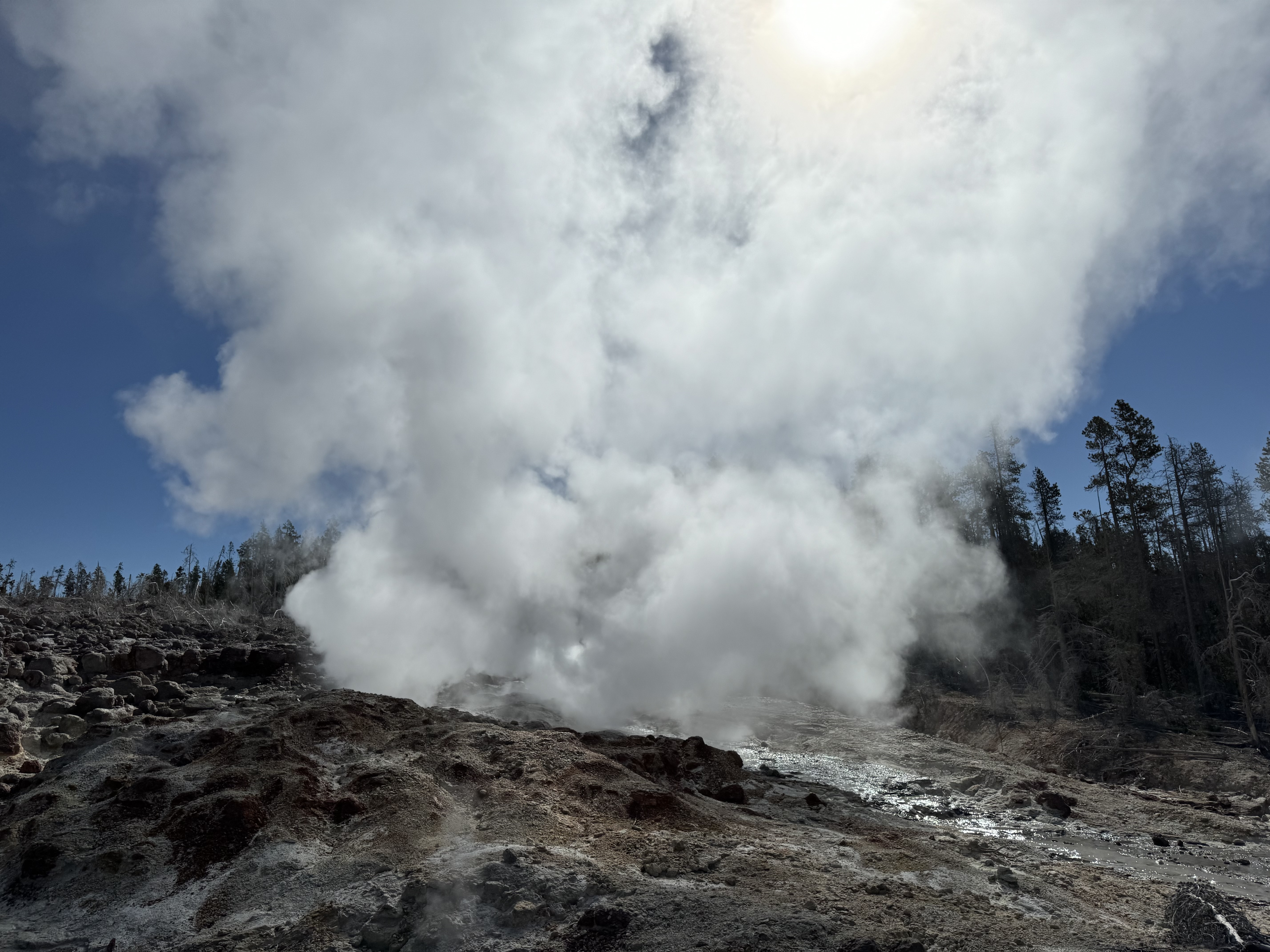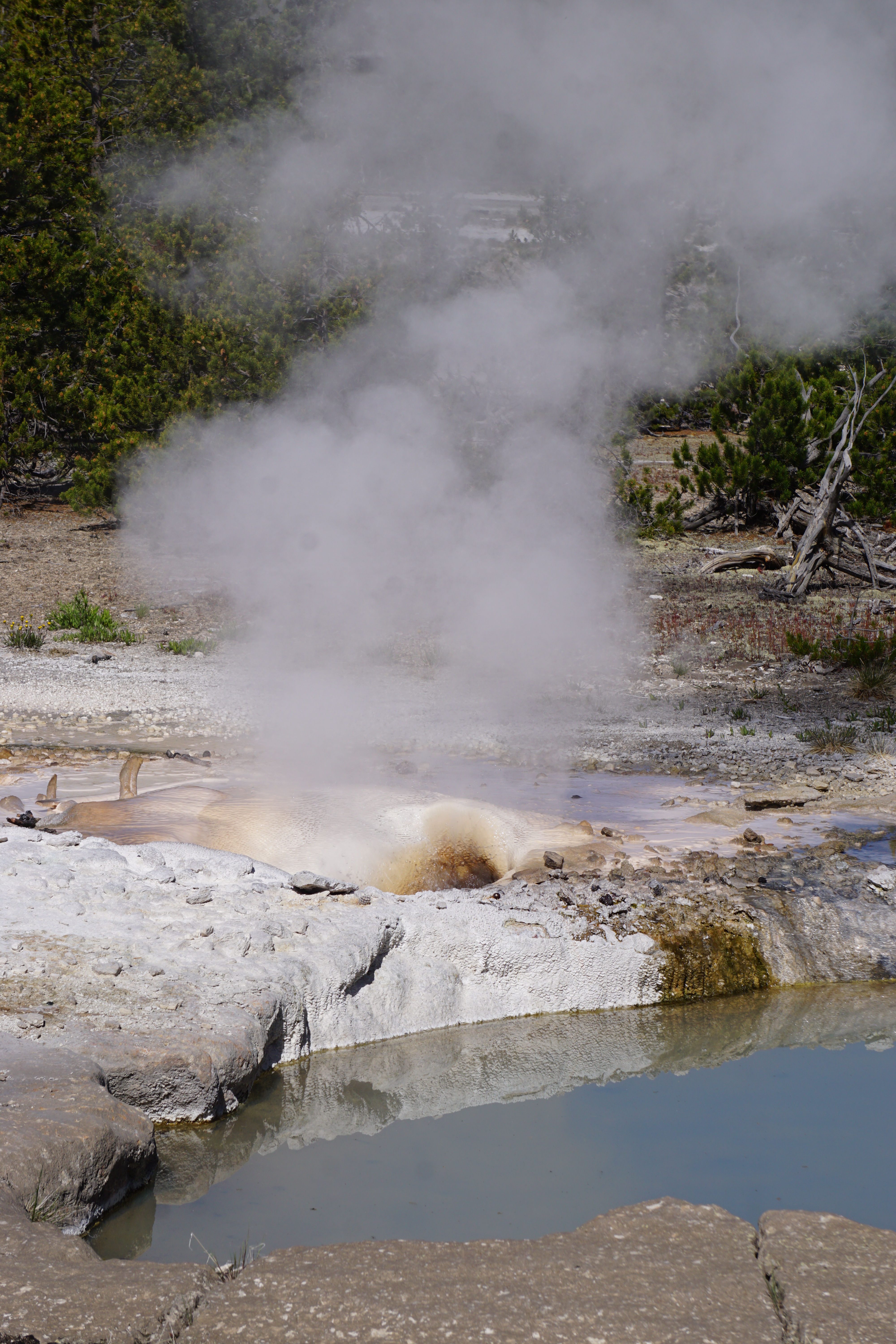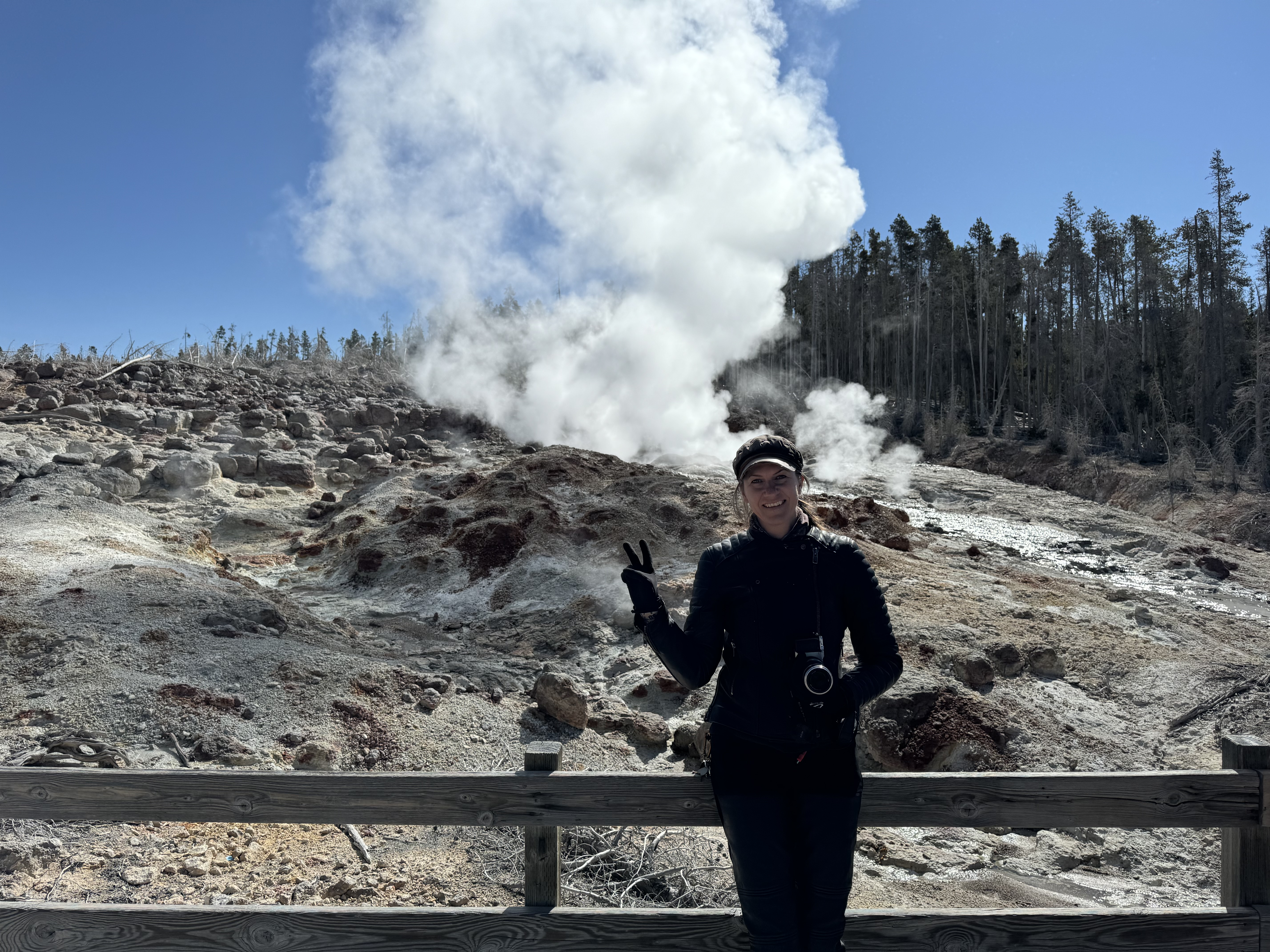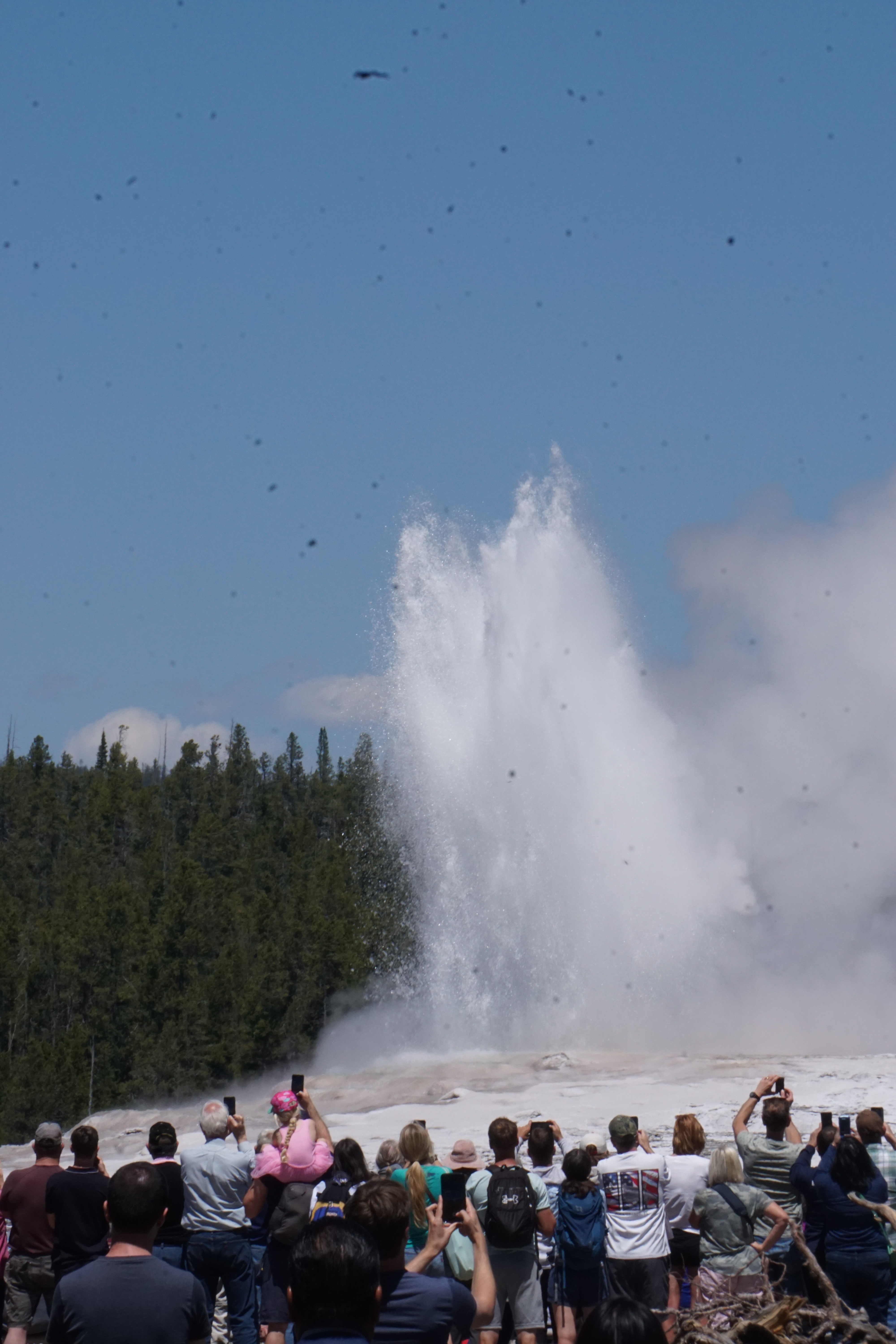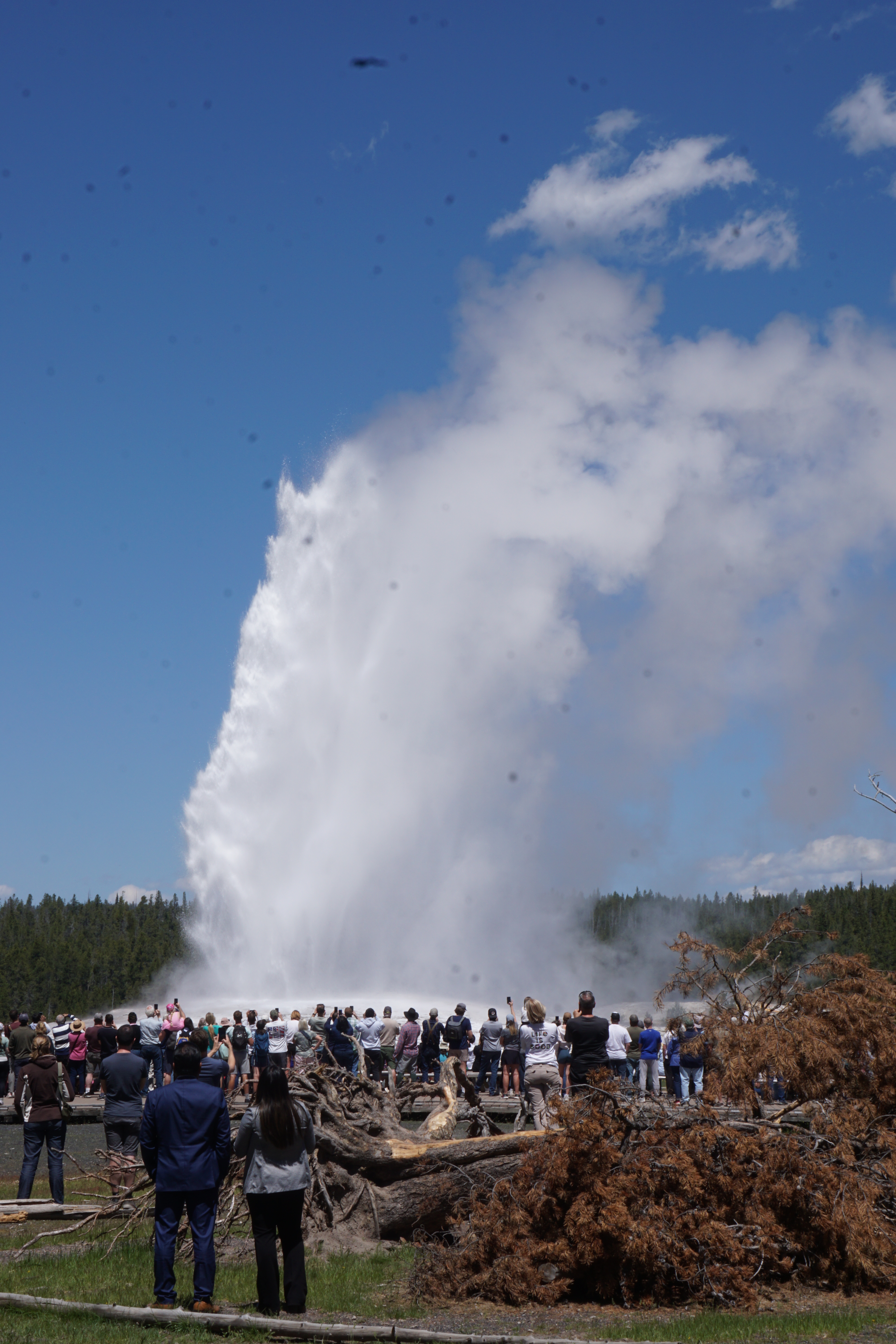 And what trip to Yellowstone is complete without seeing Old Faithful Geyser? The timing couldn’t have been more perfect, we walked up and it erupted minutes later. The photos unfortunately were not so perfect as Bee’s lens was unknowingly dirty! We took the time to go to the Old Faithful Snow Lodge to admire the architecture and grab lunch.