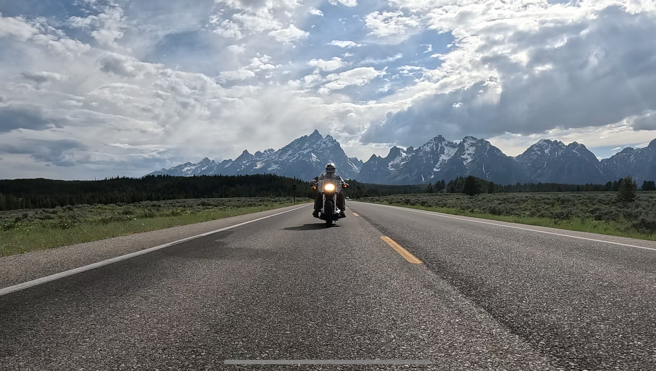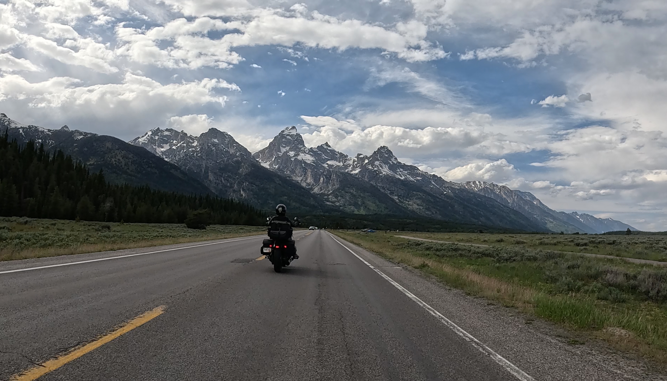 From here we headed to Yellowstone Lake and hung a right, heading south towards the Grand Tetons. This was never part of our original trip so all of these beautiful roads and scenery were just a huge bonus and helped to make up for the fact we had to Skip glacier. I can definitely say that the Grand Teton Mountains are some of the most impressive mountains in the country, riding along the Snake River and the base of these mountains is pretty amazing, especially on a motorcycle with nothing obstructing your view