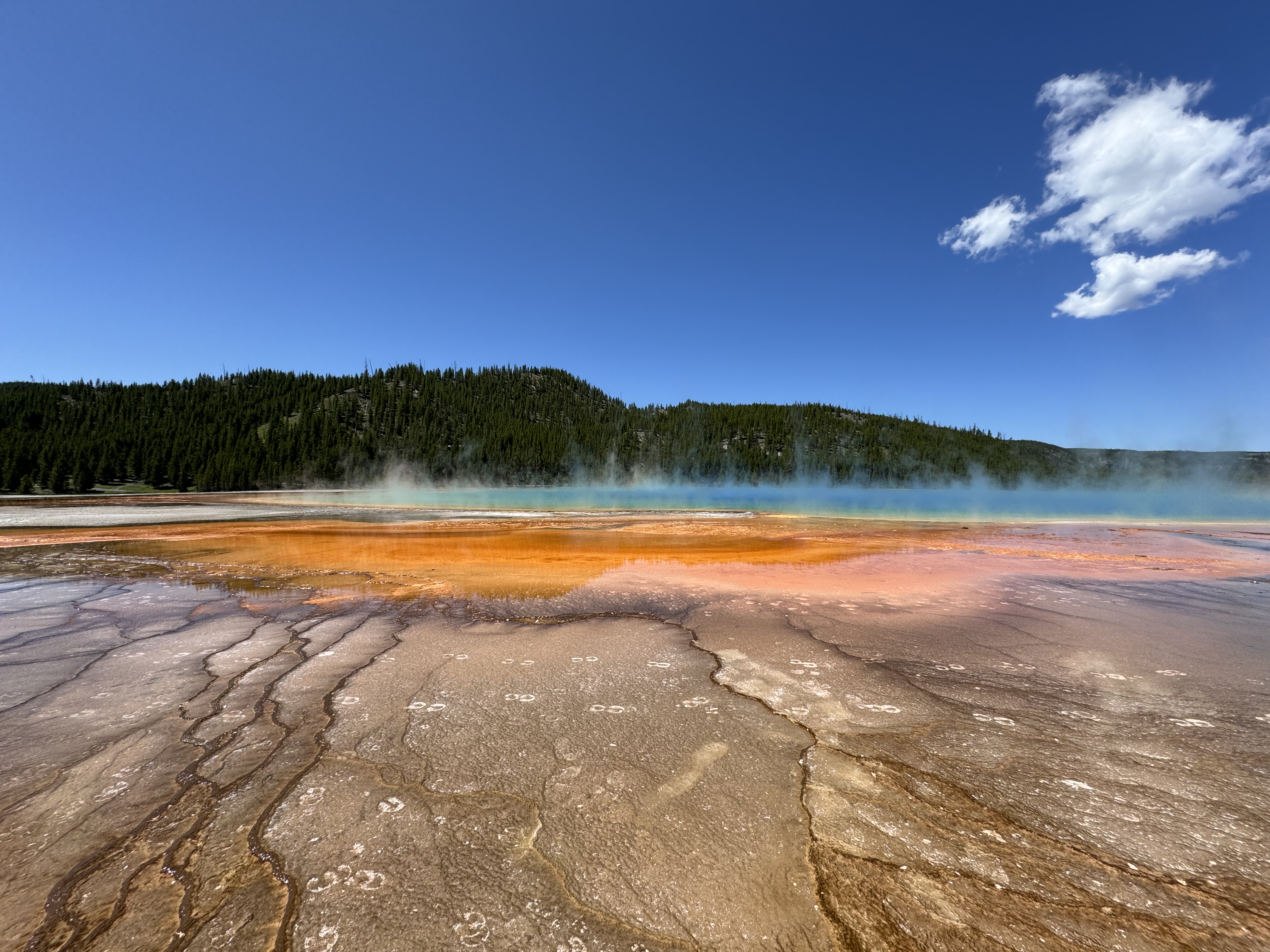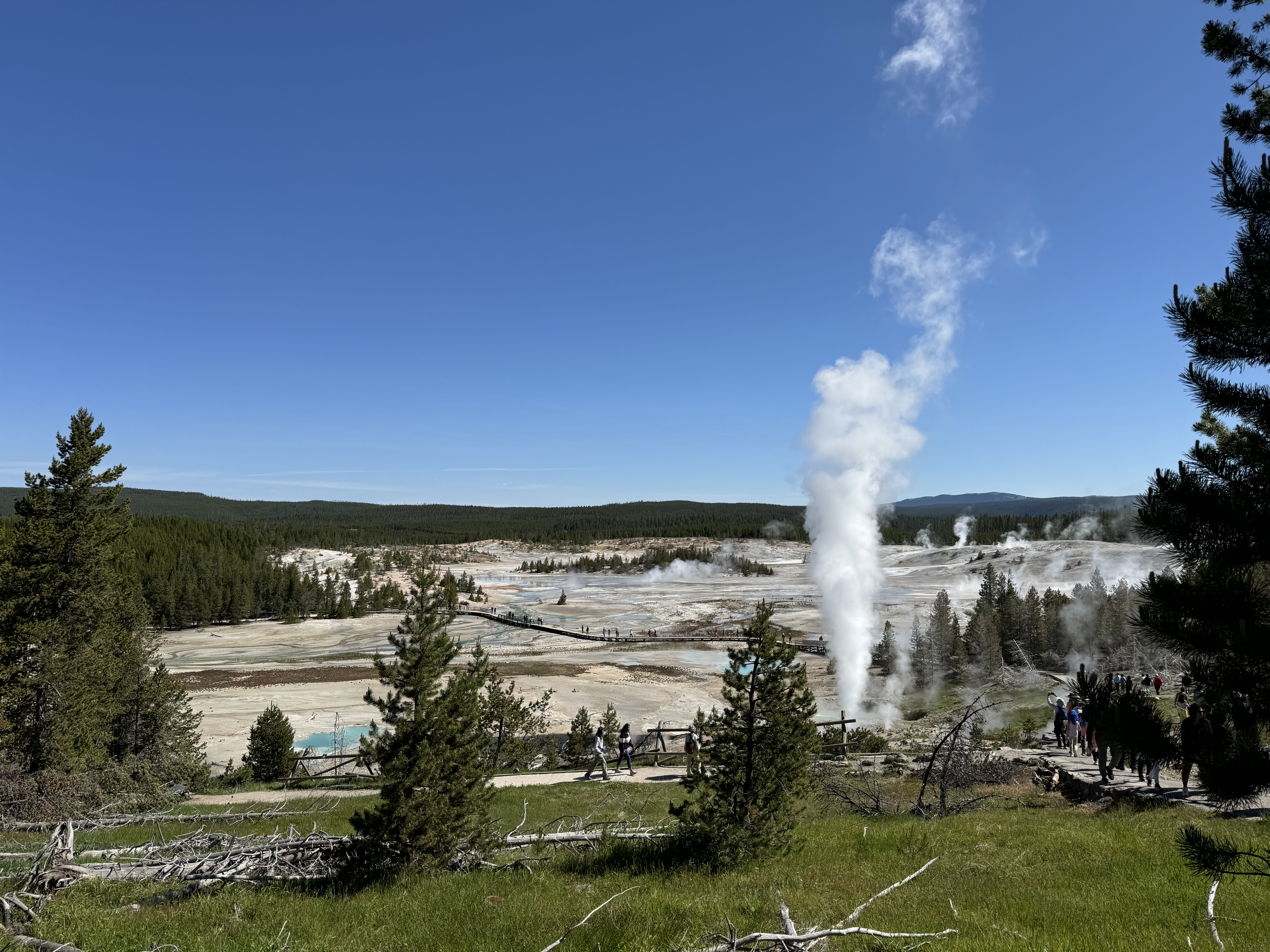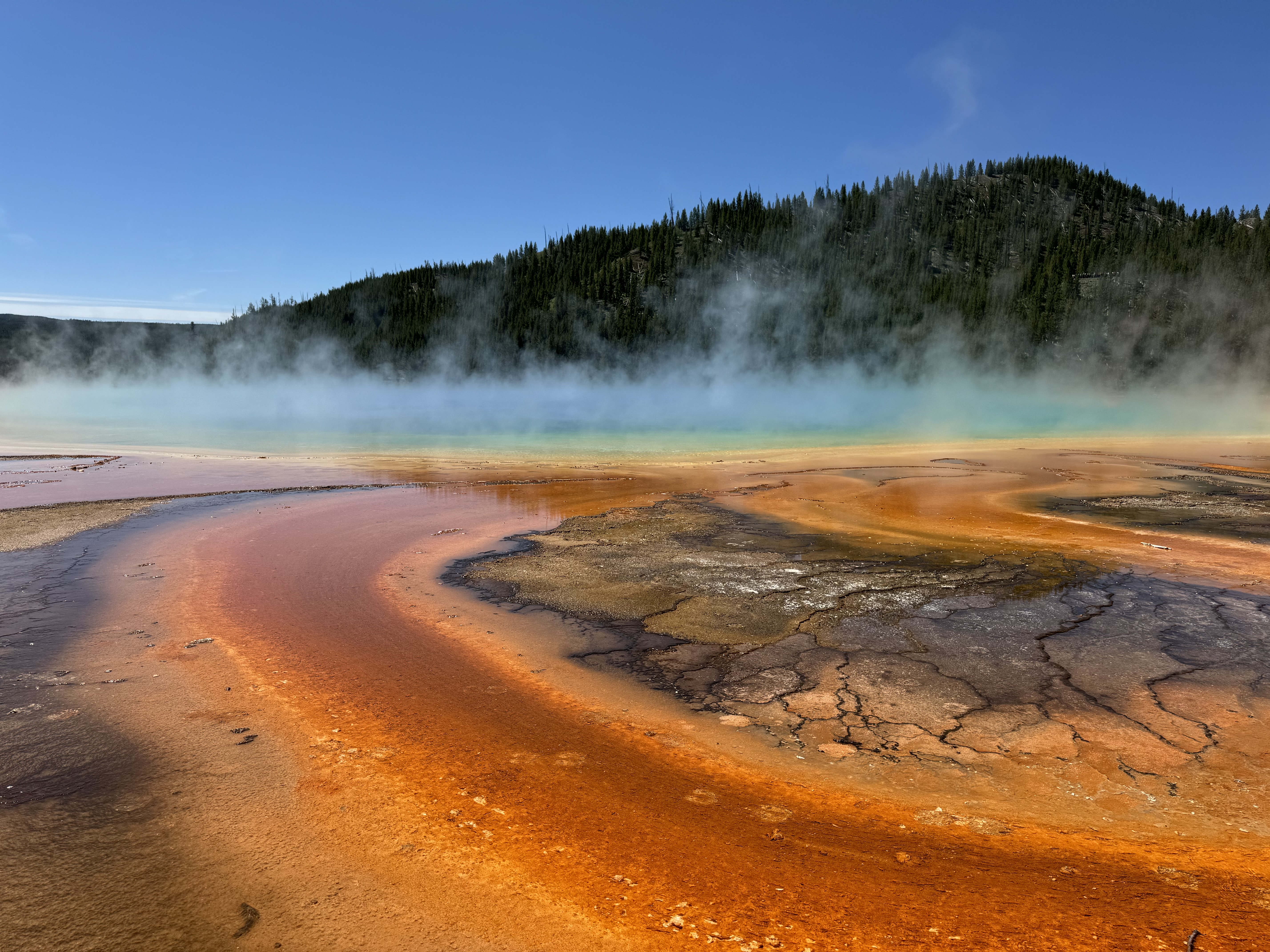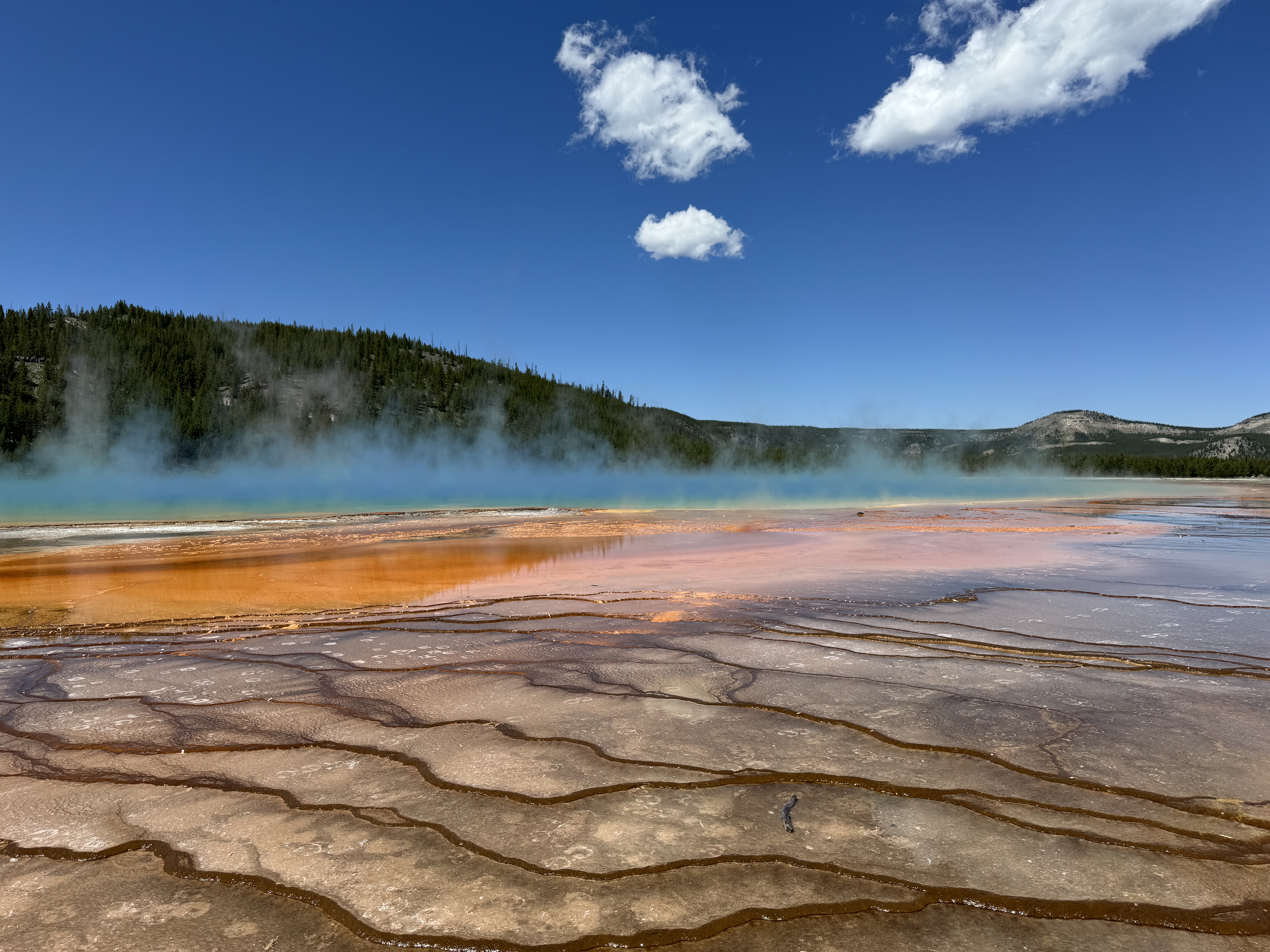 We stopped and hiked around many of the springs and geysers, and of course the Grand Prismatic Spring, spring overlook, one of the most beautiful places in the park in my opinion.