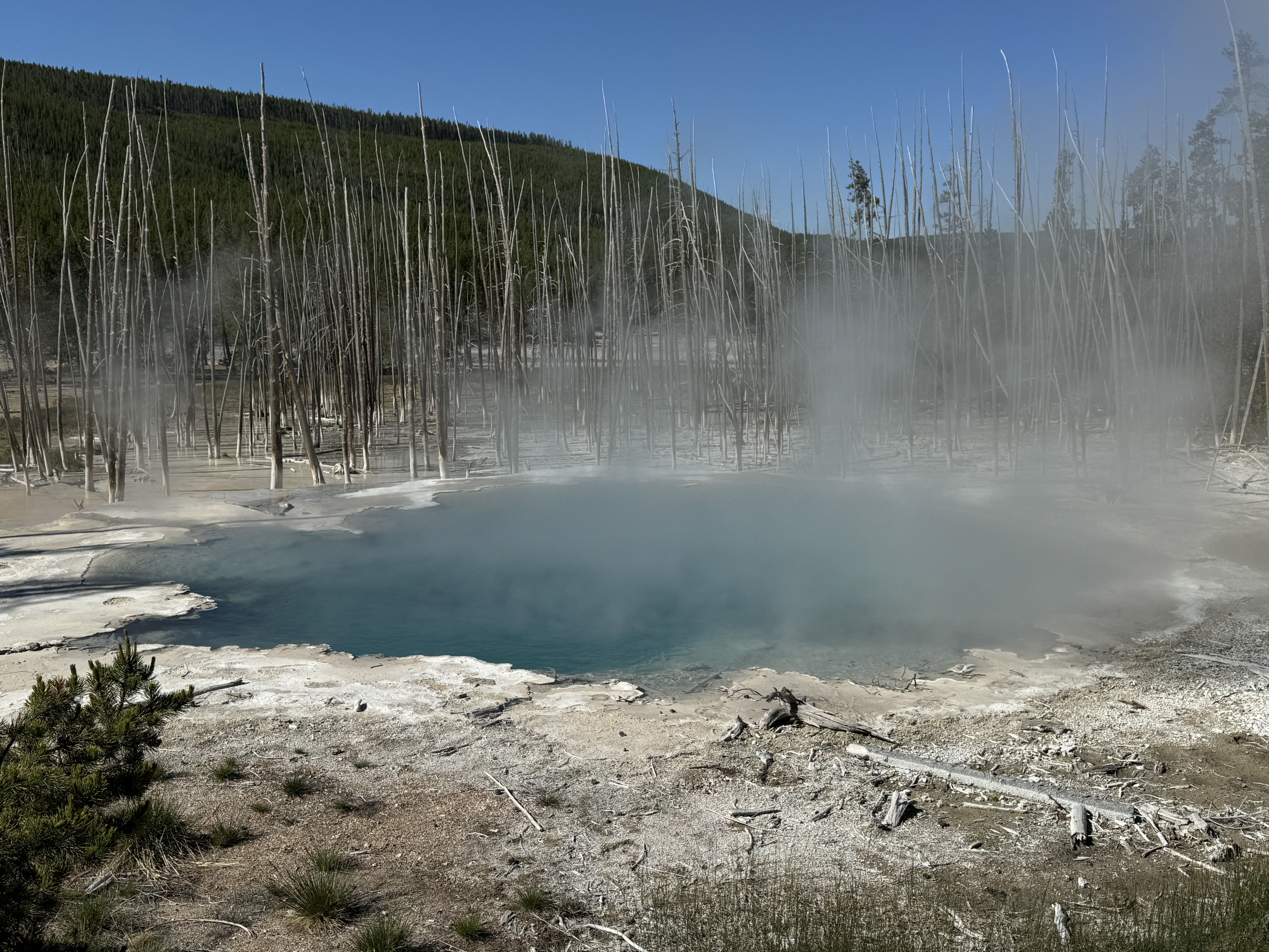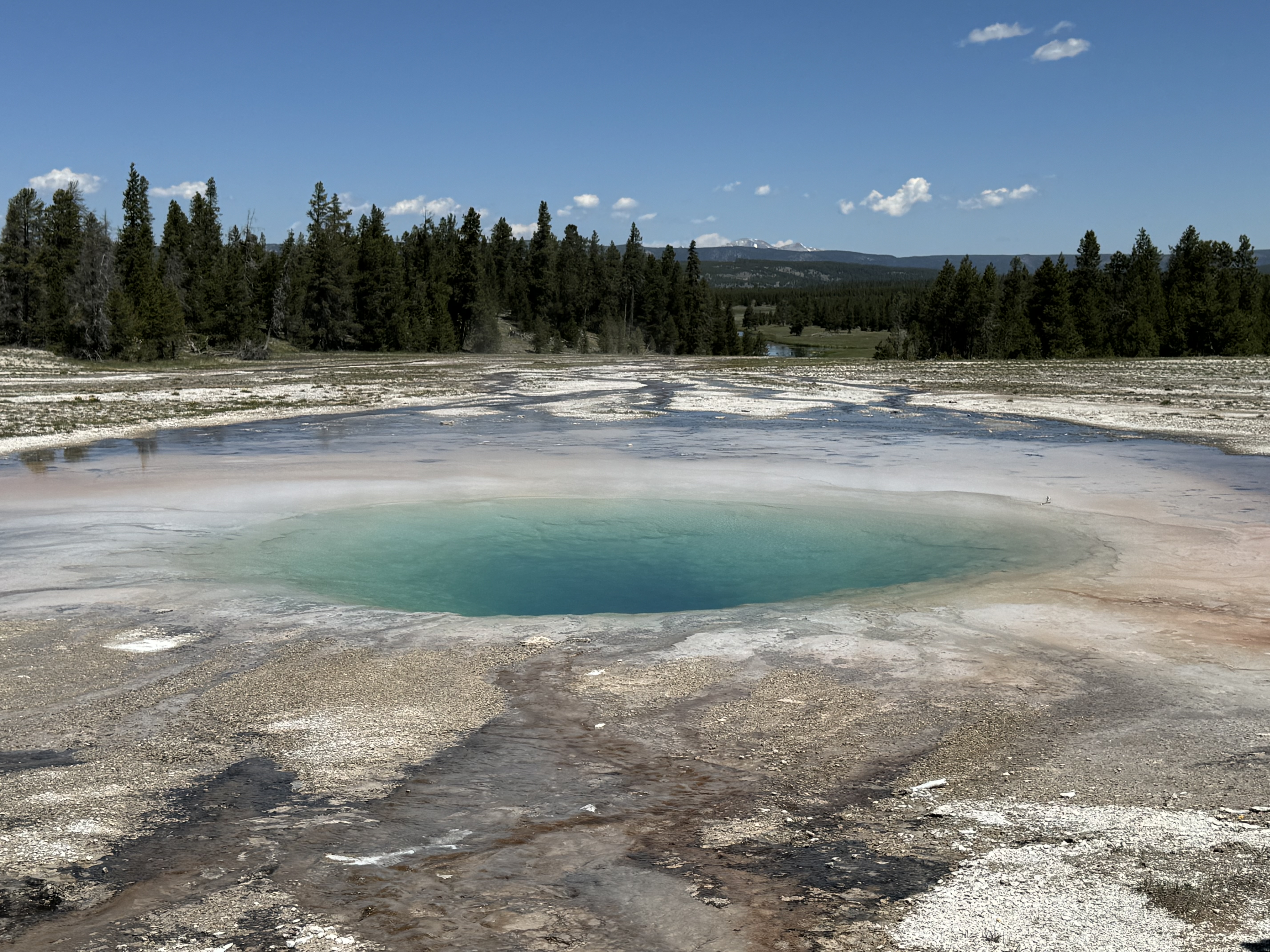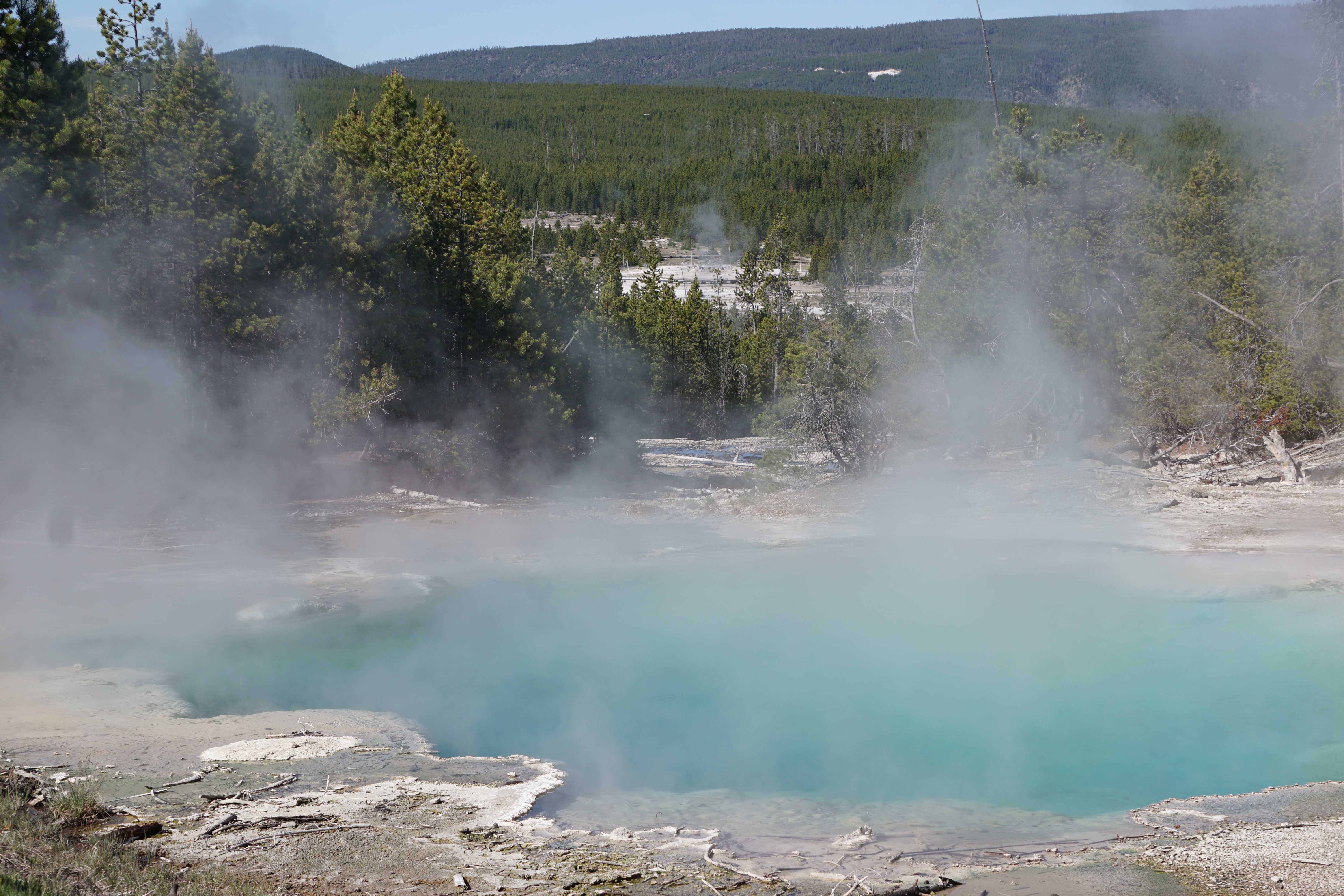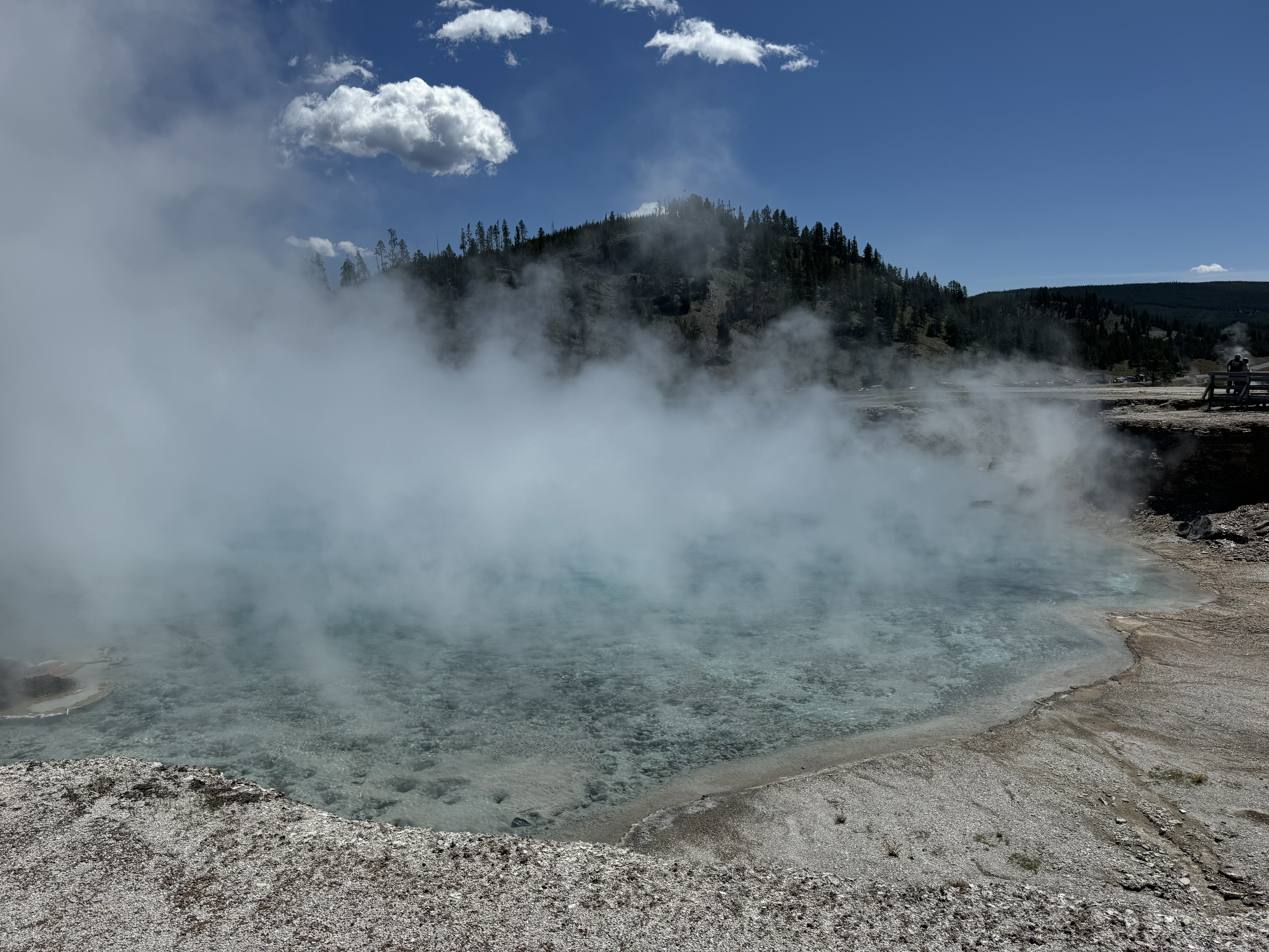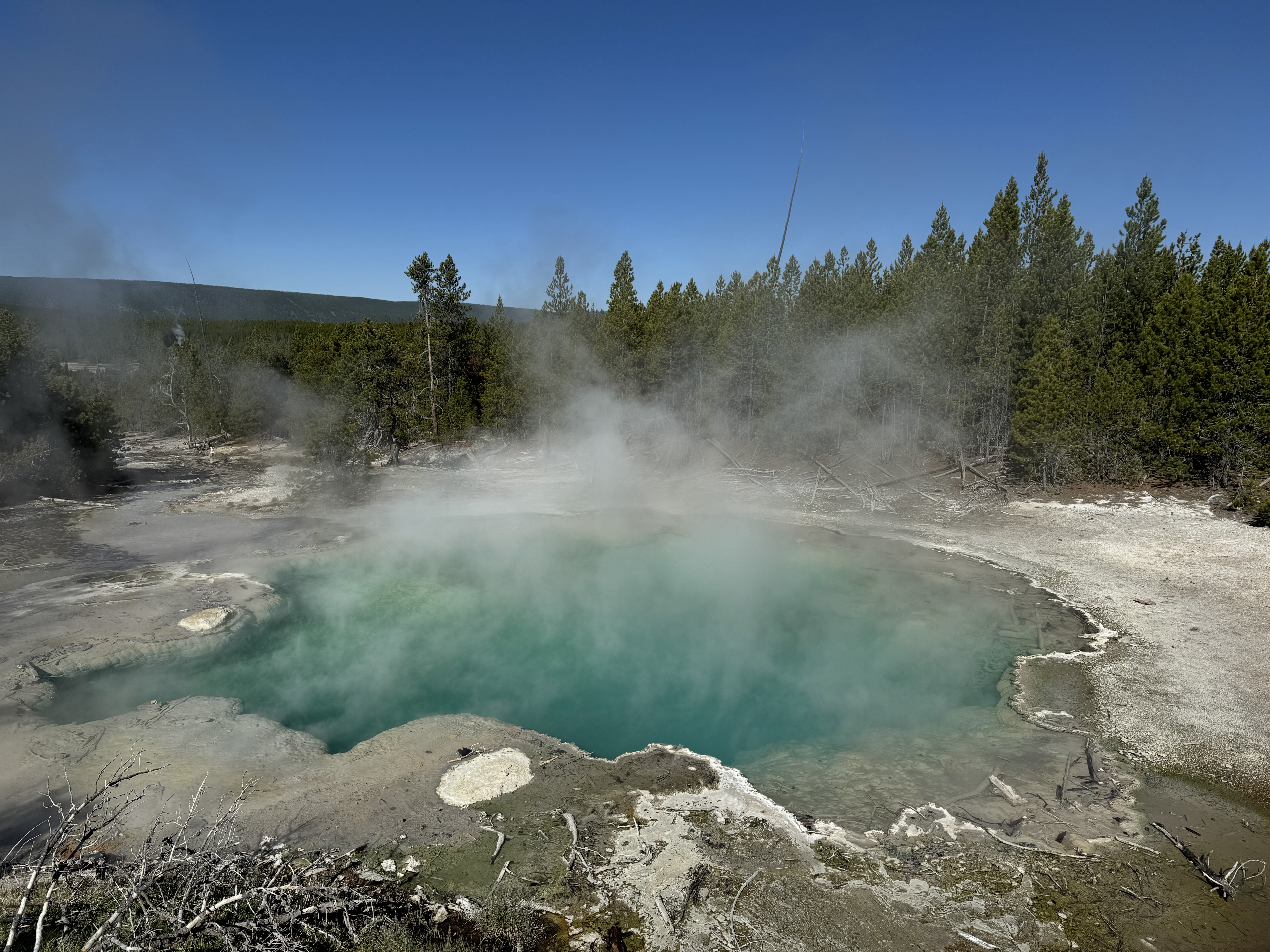 We stopped and hiked around many of the springs and geysers, and of course the Grand Prismatic Spring, spring overlook, one of the most beautiful places in the park in my opinion.