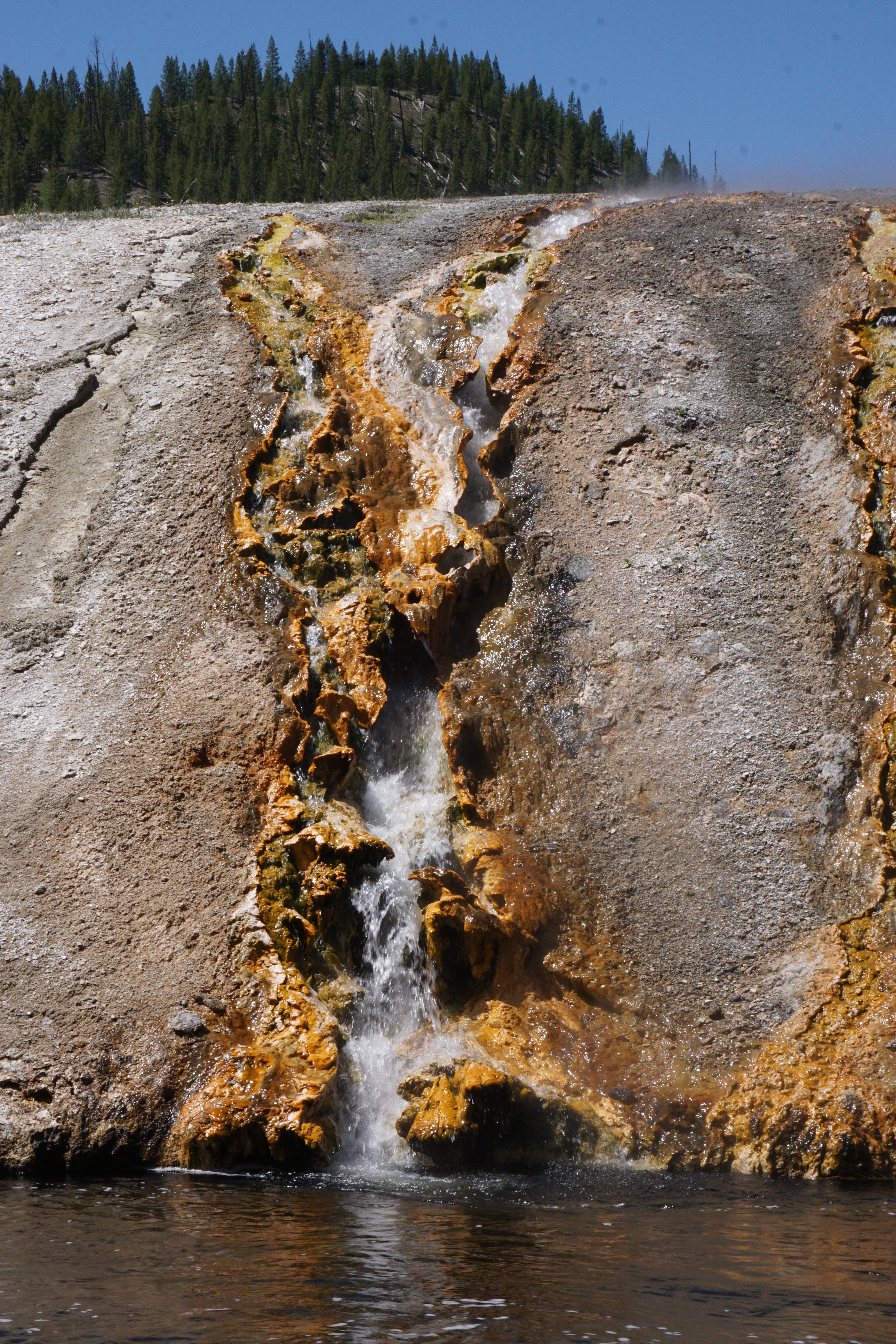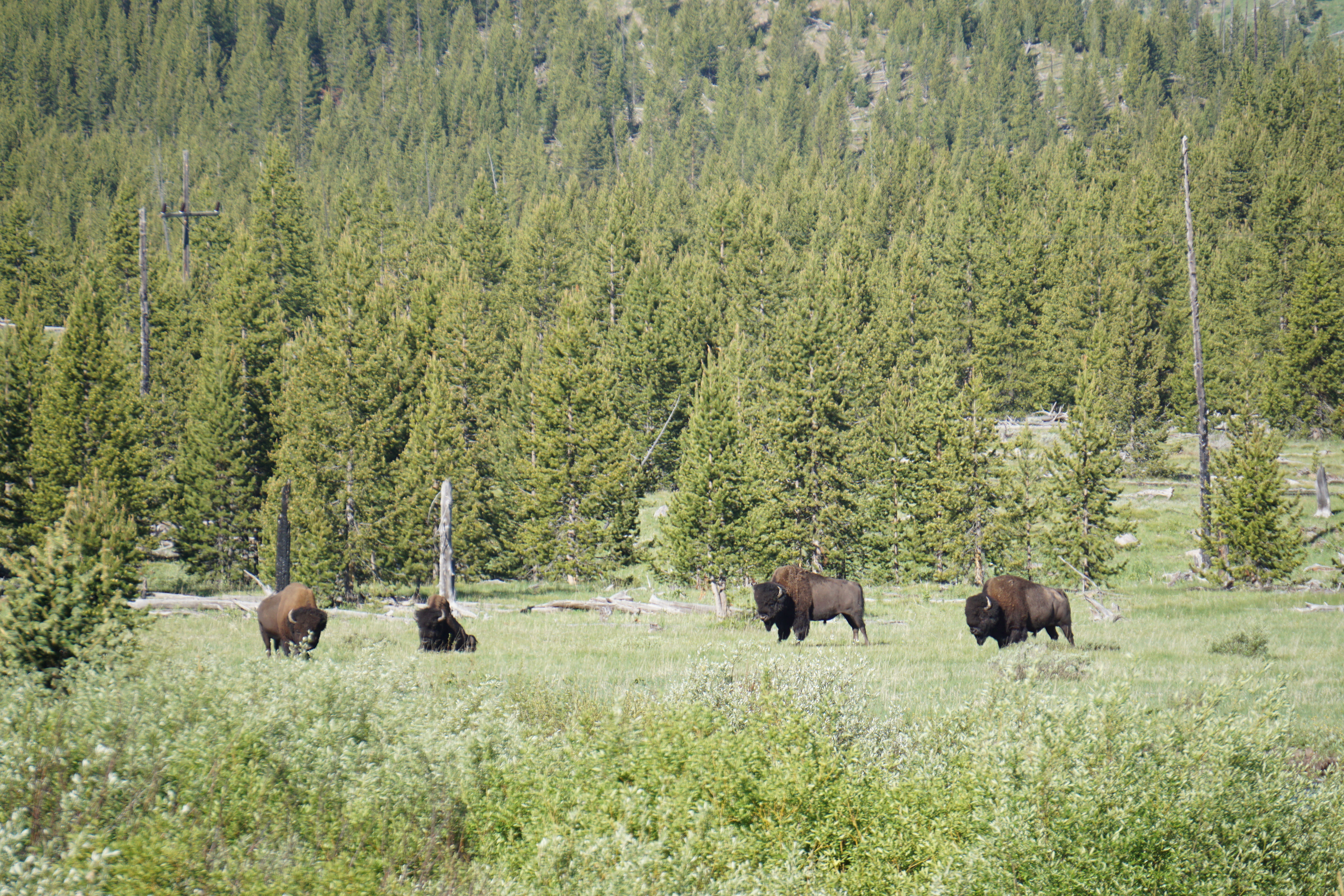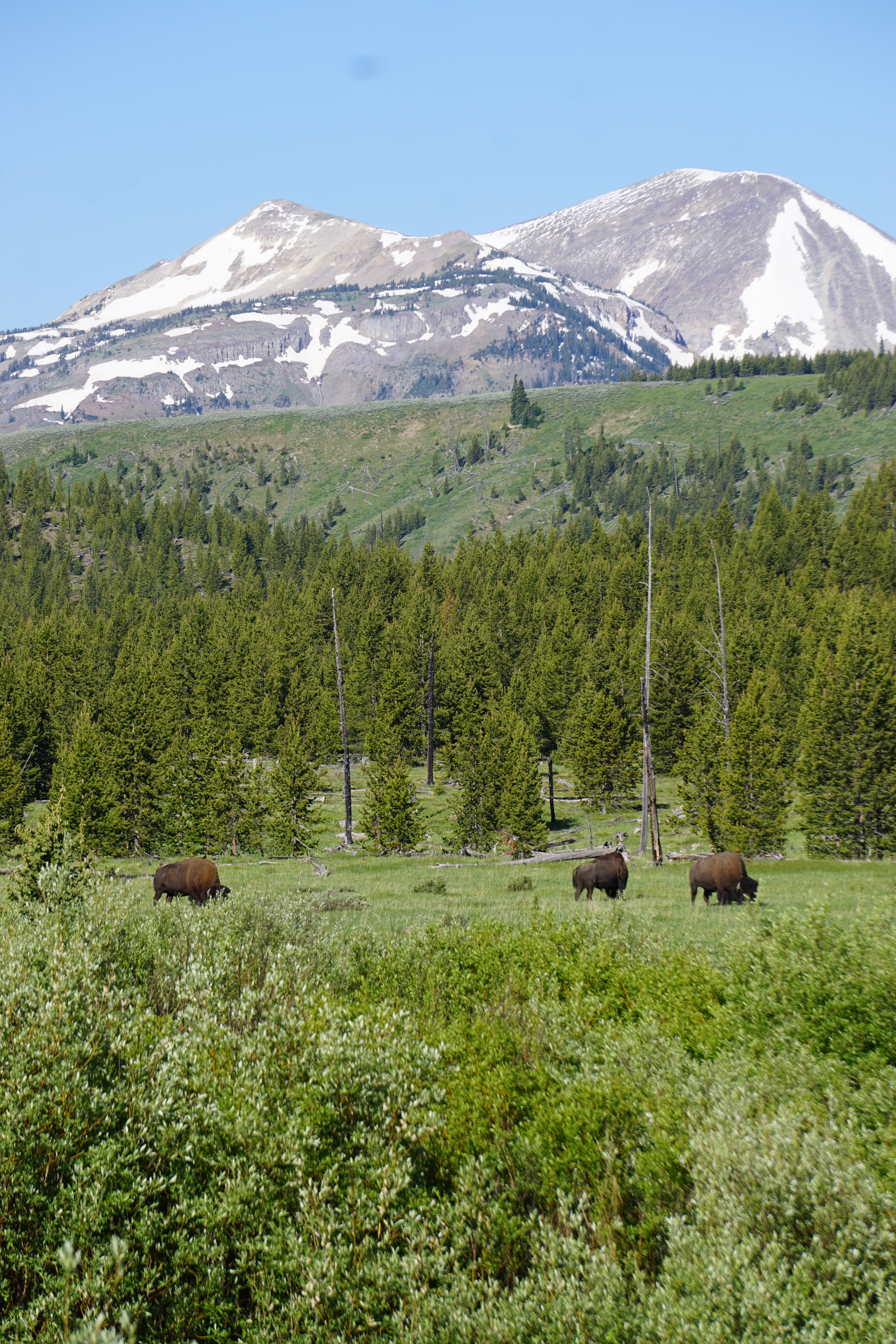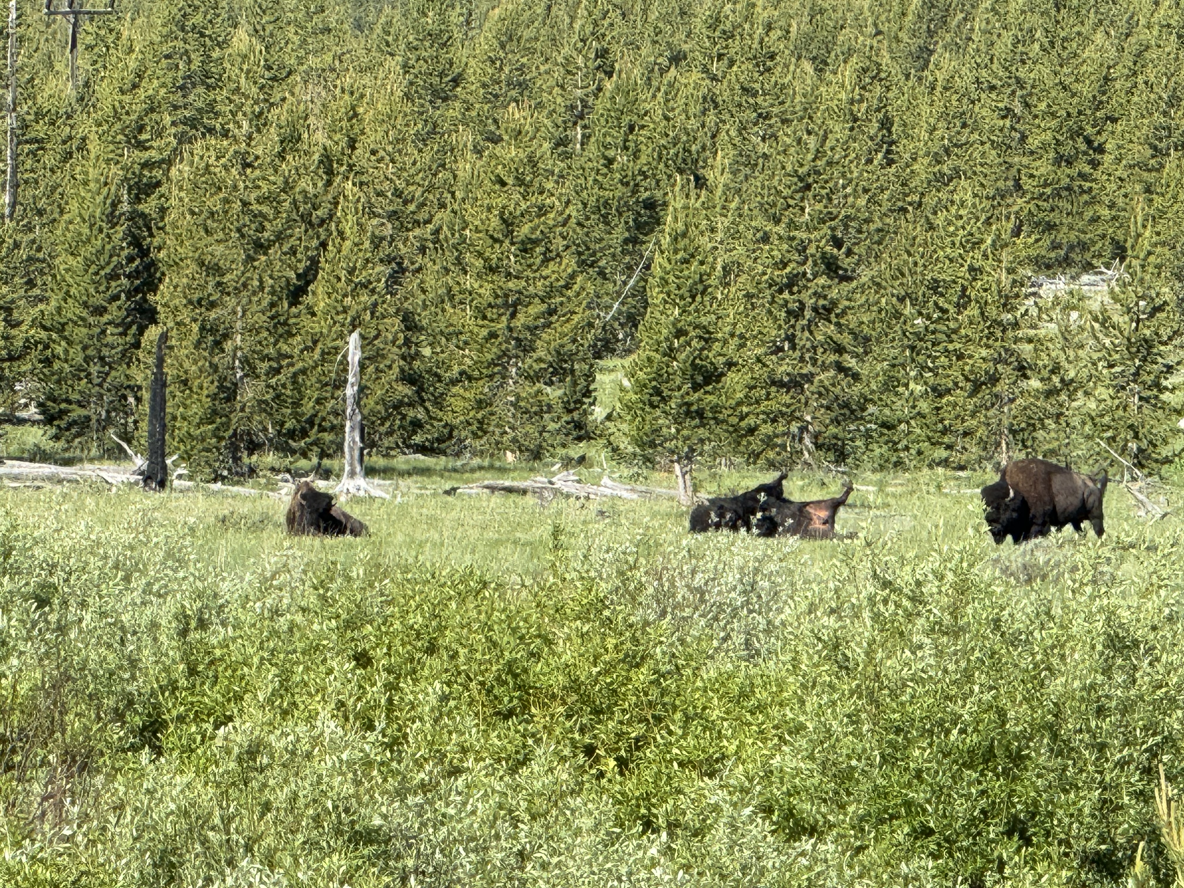 We started out on our bikes early in the morning and dropped back into Wyoming and into Yellowstone National Park. We beat the morning crowds and bypassed Mammoth Hot Springs since we’d already seen them the day before, and enjoyed the beautiful roads and riding through the national park. We made plenty of stops on the way, watched some buffalo roll in the dirt, stopped at waterfalls on the way, ultimately making our way into the thermal areas.