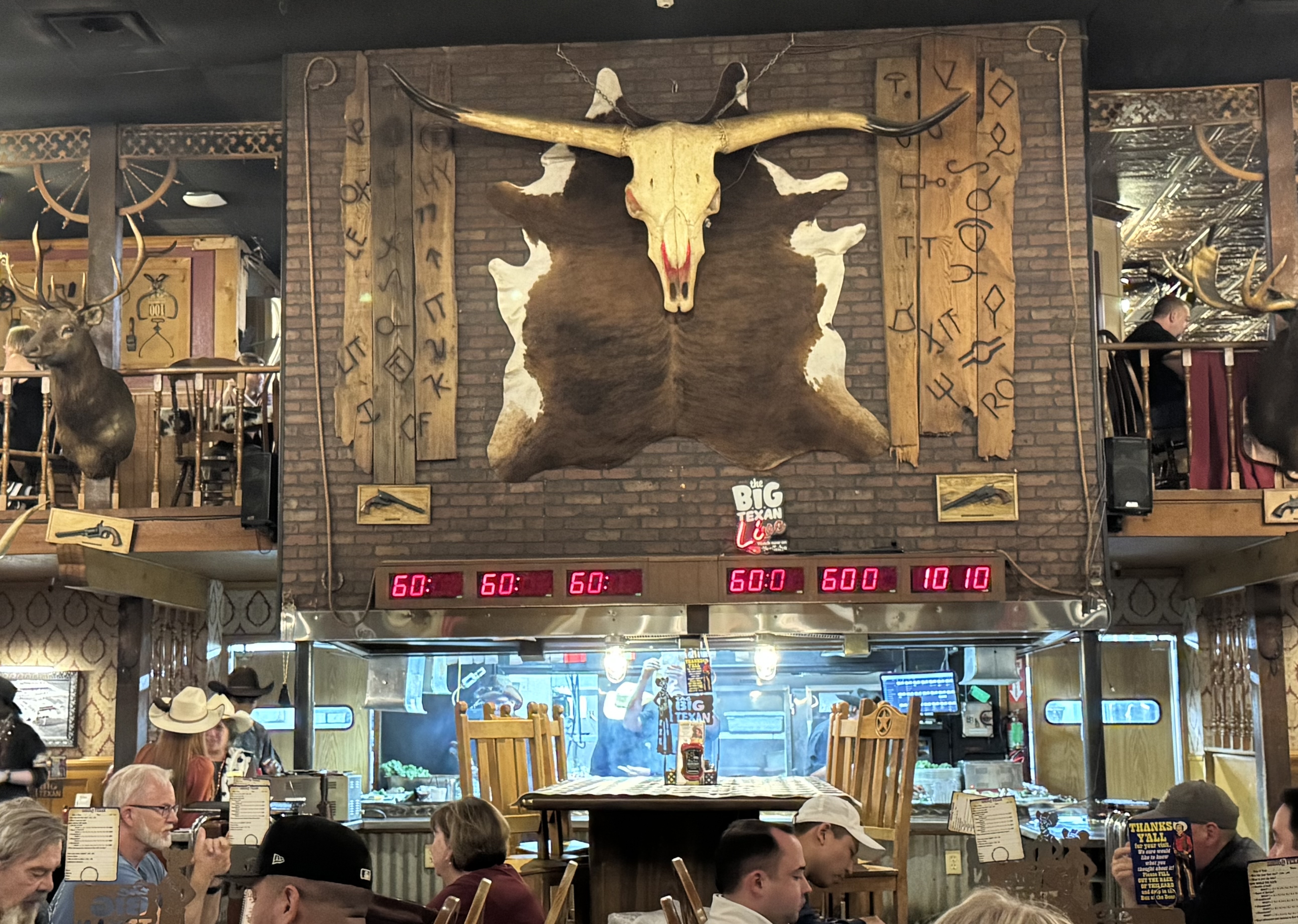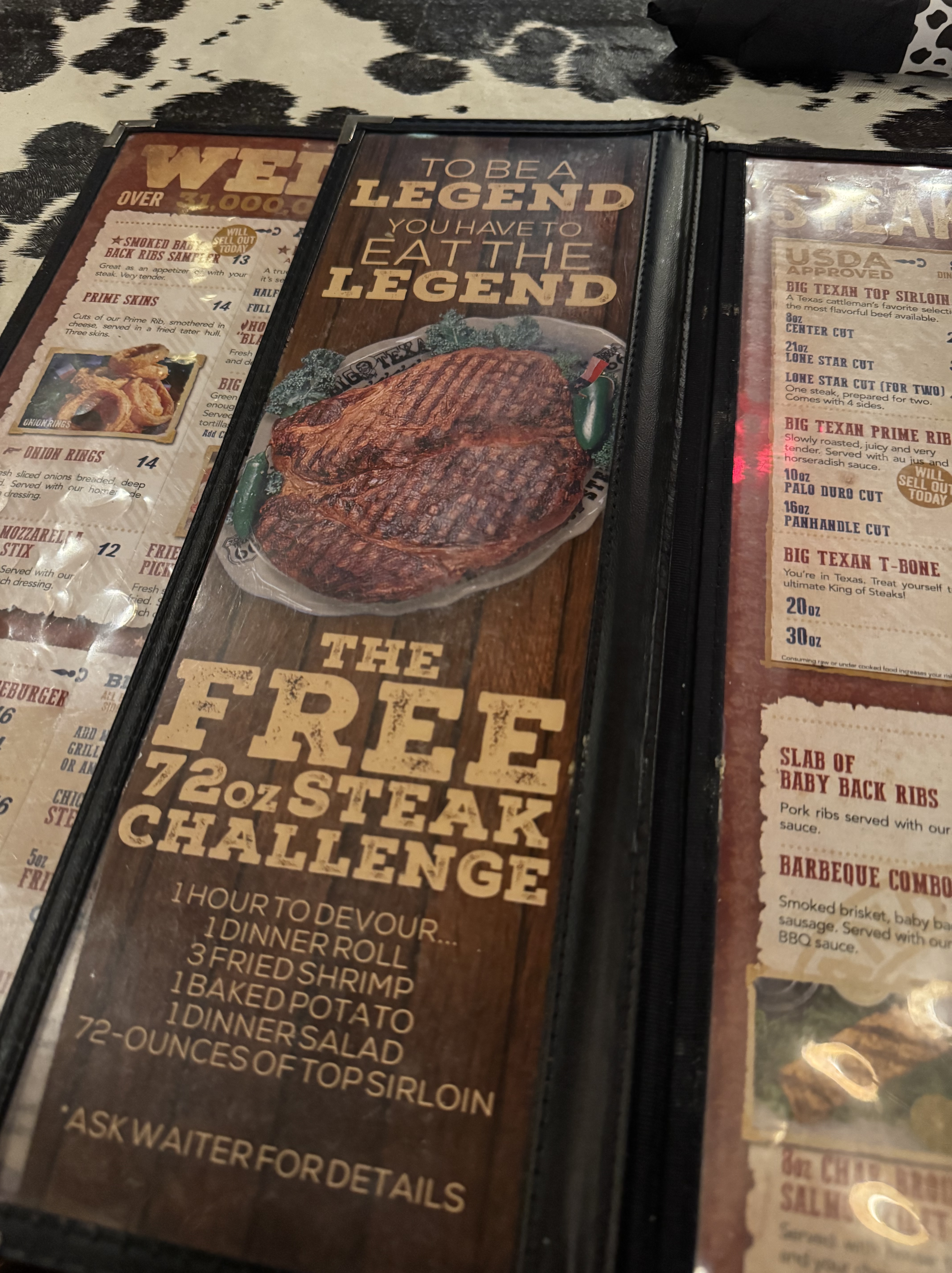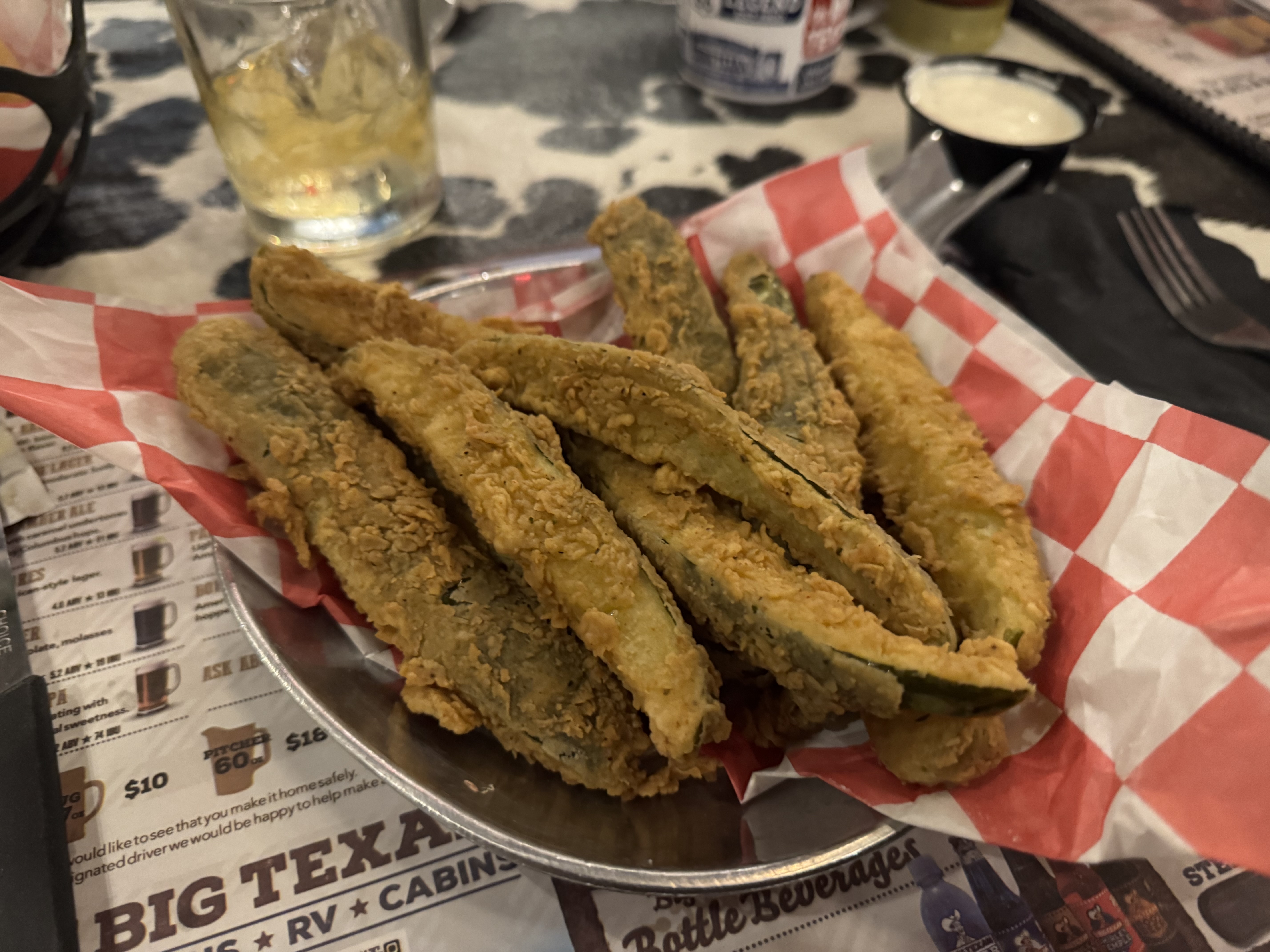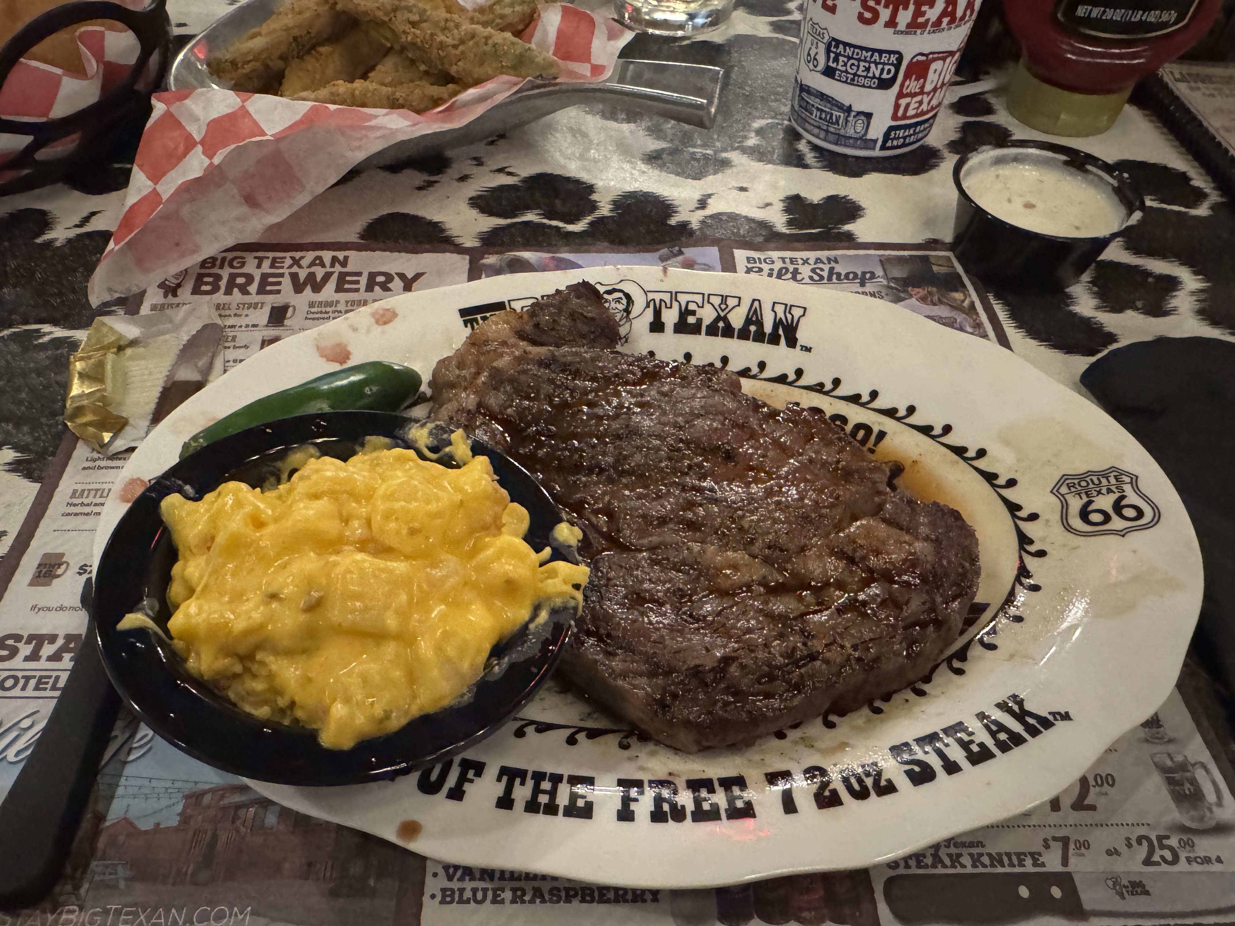 I was seated near two sisters on their way cross country via Route 66. I did not feel prepared so I skipped the 72oz “Free” steak and decided to just get a 12oz steak and some fried pickles.