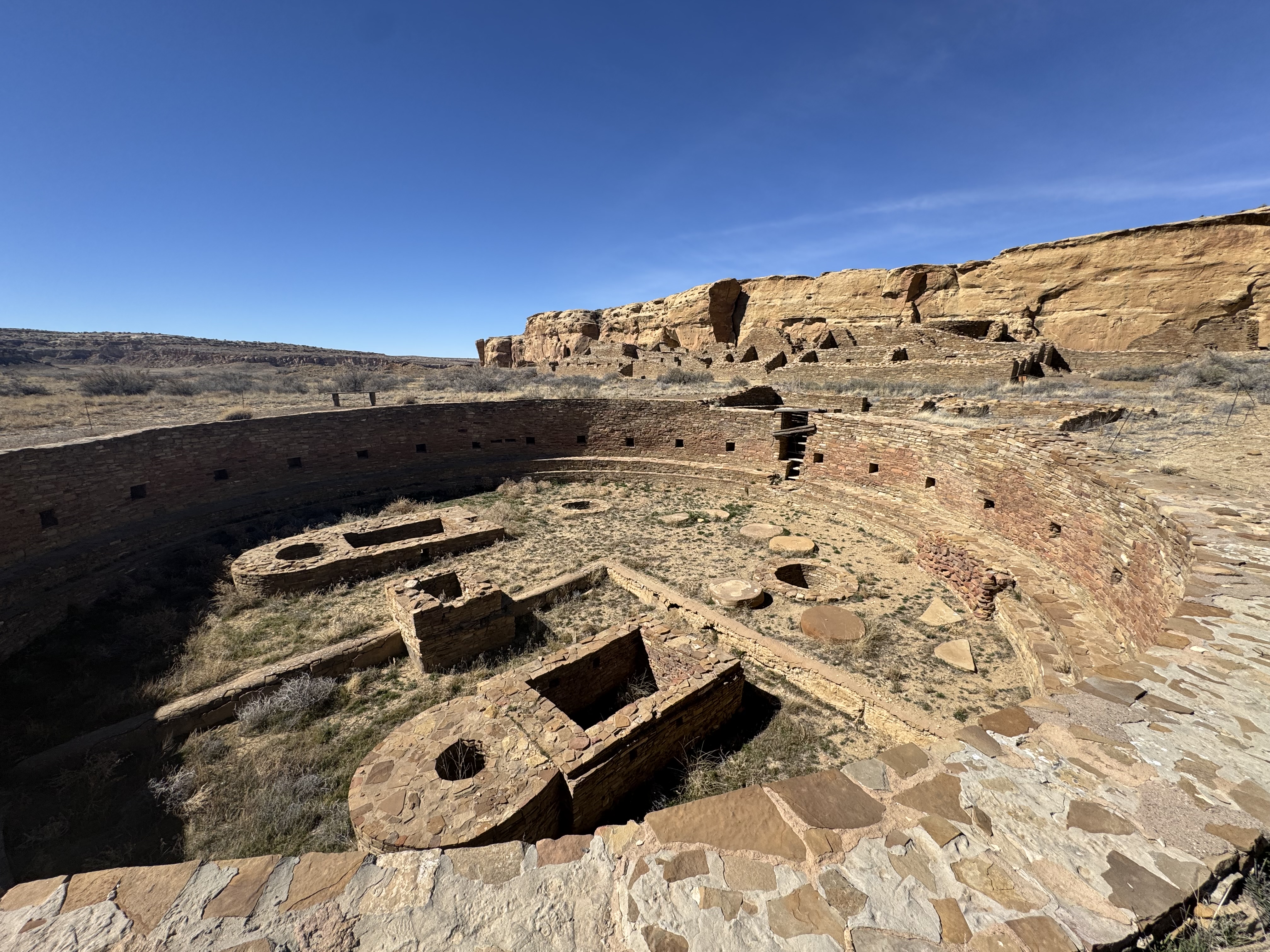 The Pueblo was stunning, walls remain over 2 stories tall, and the Great Kiva (a large, typically circular, subterranean or semi-subterranean structure used by Ancestral Puebloans for major community ceremonies, political meetings, and social gatherings) was the largest and best preserved we have ever seen. The guidebook was easily worth the $3.00 as it took you through the complex, pointing out the different sections and techniques used through hundreds of years of planned building, and highlighting features unique to this park.