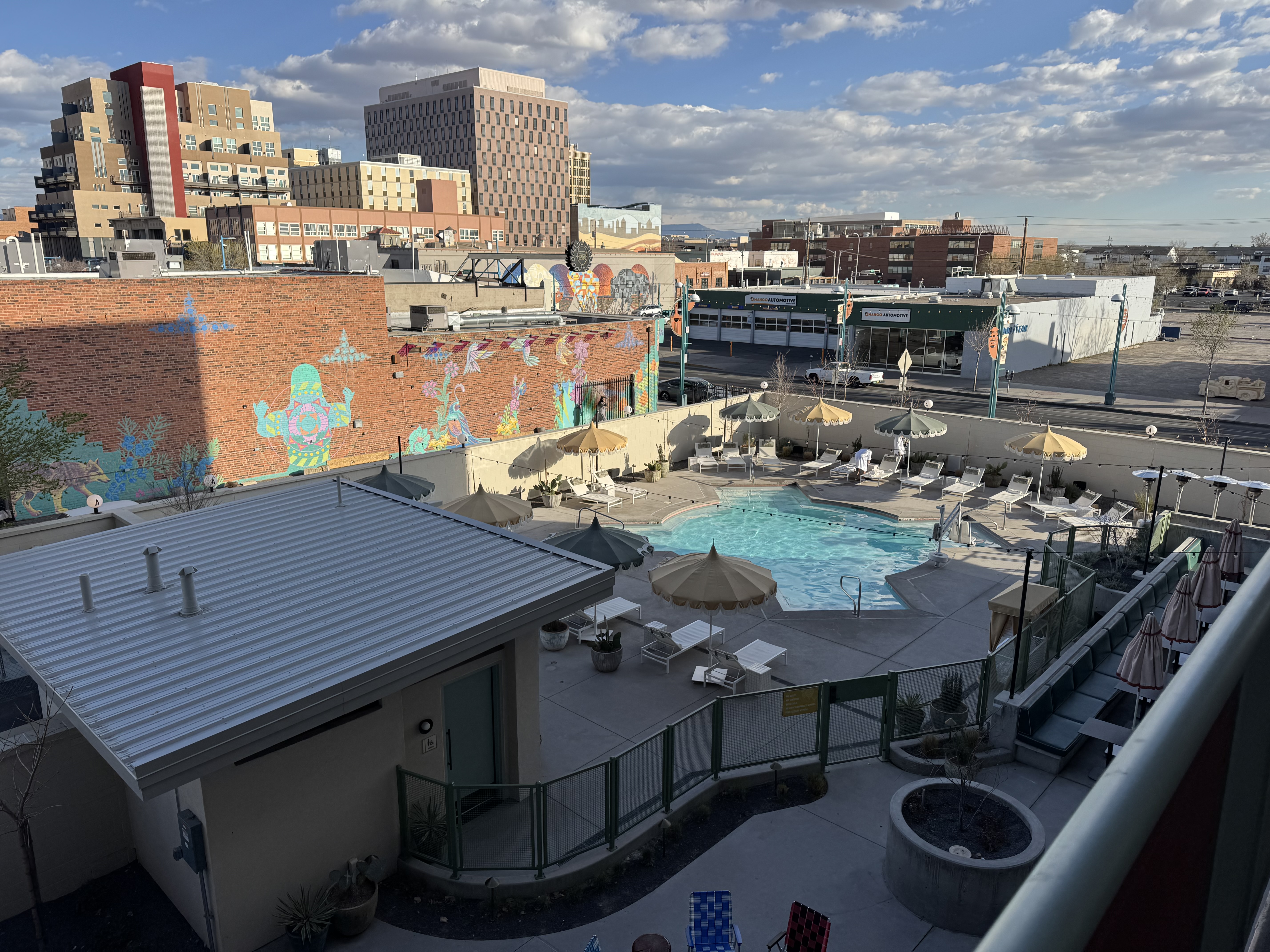 We had an uneventful drive down, and checked into our mid-century hotel in downtown Albuquerque, within walking distance of the theater. After a quick dip in the pool, we cleaned up and headed out for a sushi dinner (no sushi in Creede!), then made our way to the venue.