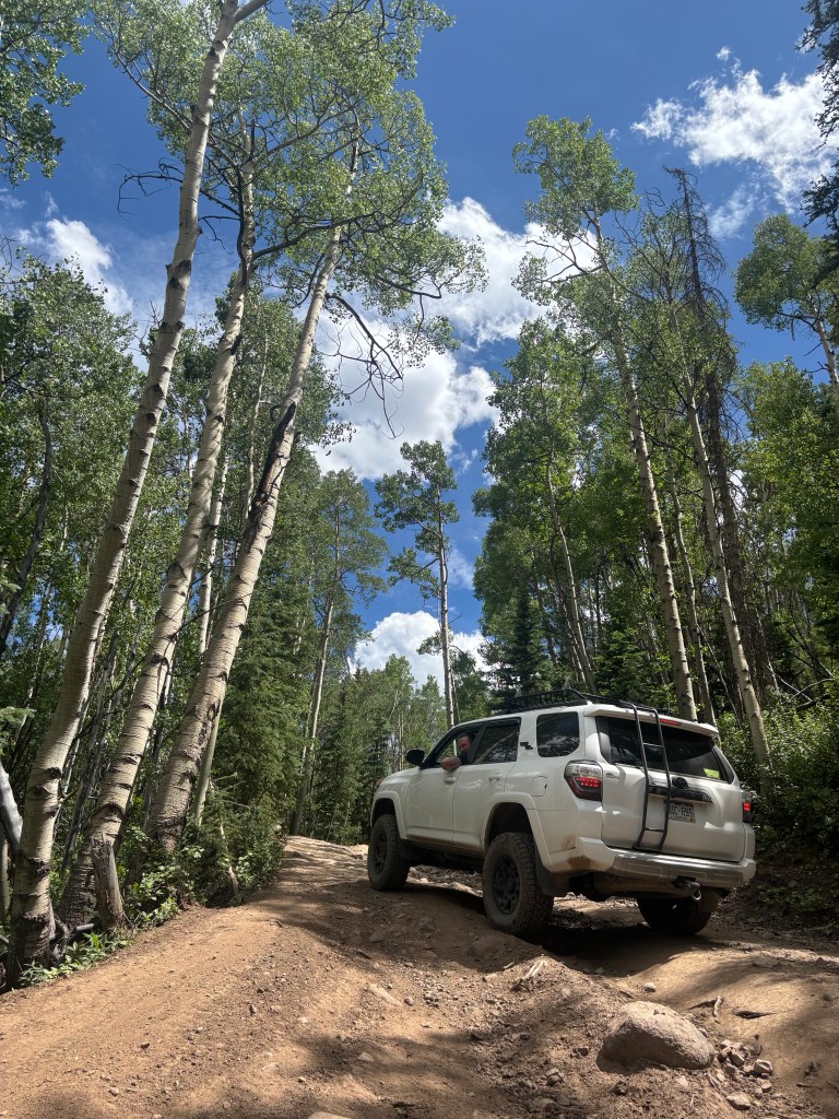 It started out a bit rocky and bumpy but about halfway in definitely became a bit more technical! We took our time on the trail and passed a few side-by-sides headed out as well as some hikers sharing the road. We didn’t have any real issues but I am glad I had skid plates in a few of the more narrow rocky areas on the trail! After a water crossing we came to the trails end and caught up with a cool old Toyota FJ.
