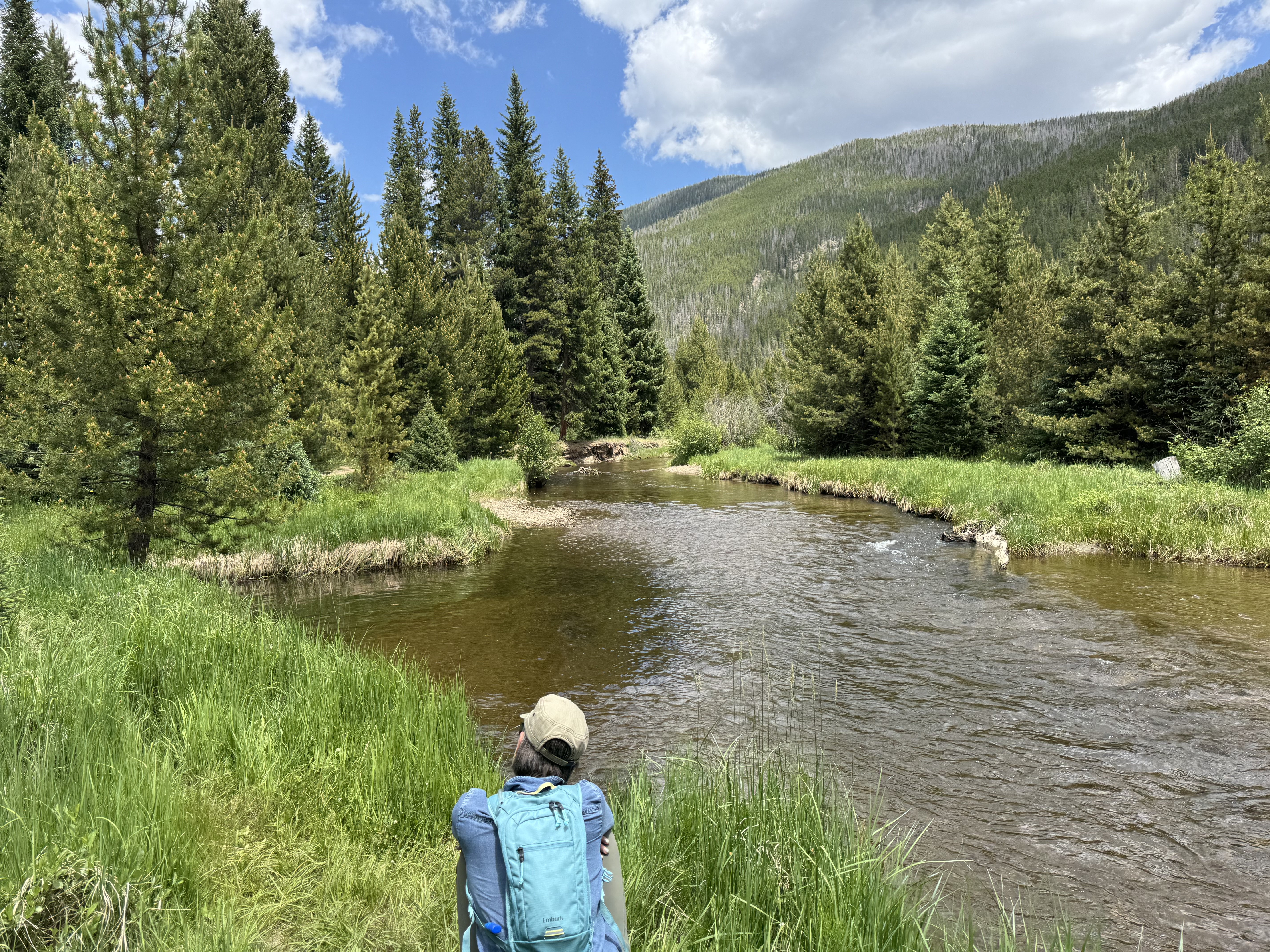 We kept most of our hikes to only a few miles long, whether the trails were loops, or in and out trails. We were able to hike through some of the lower elevation pine forests, see beaver ponds, hike up in the tundra area where there was still was snow here and there, and were treated to the site of some elk up on a mountain top watching us go by! On the way down to the West entrance at Grand Lake we did a short hike along the Colorado river and had a picnic. (Pro Tip: There is only one restaurant in the park called the Trail Ridge Store – So unless you want to spend a long time parking and waiting in line, bring your own food in!)