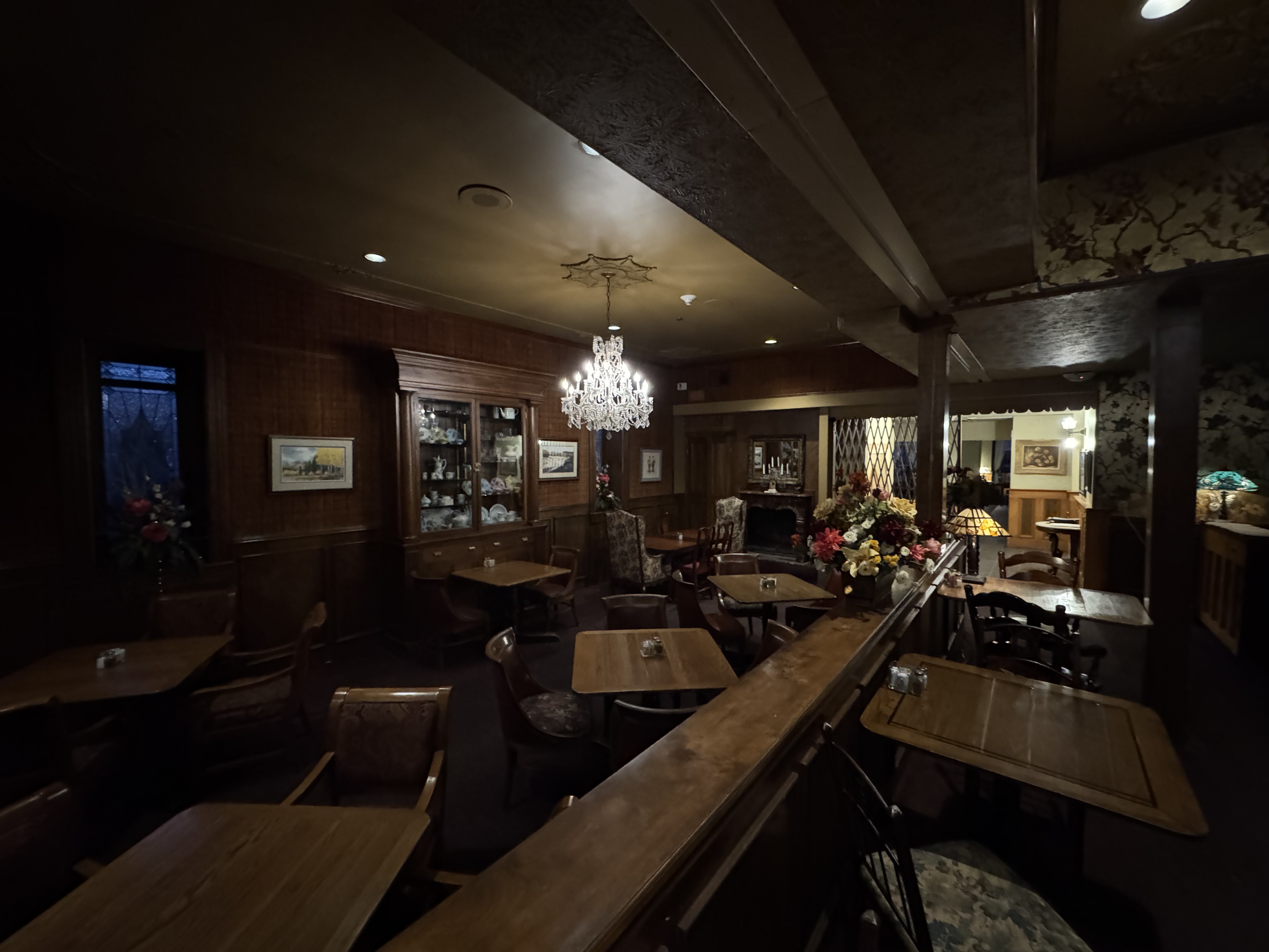 I headed down to the restaurant and asked for a table, while waiting I walked over to the bar to admire the gorgeous antique bar back. The barkeep let me know that unfortunately there was no music tonight, but recommended a few local whiskeys to try.