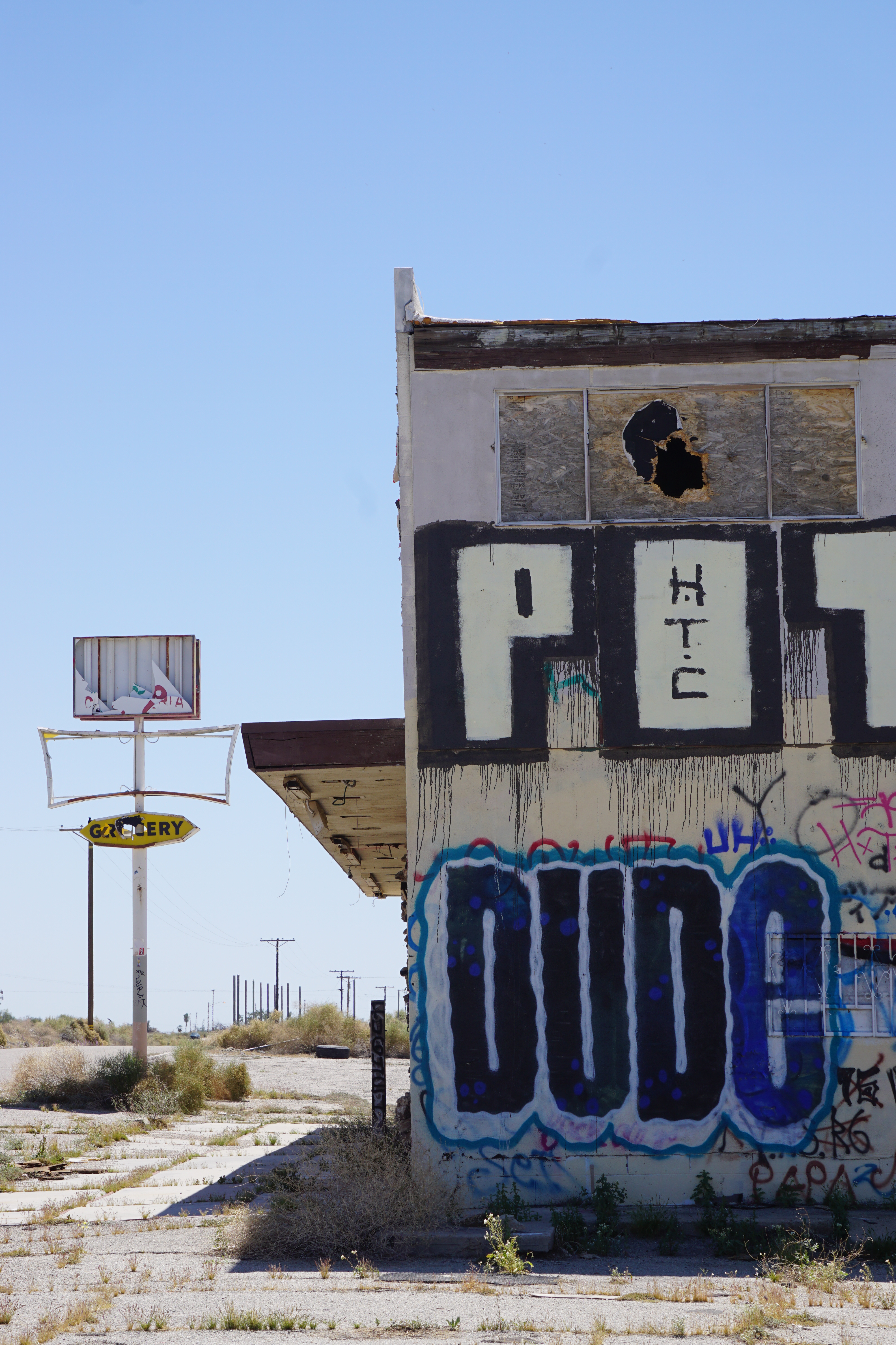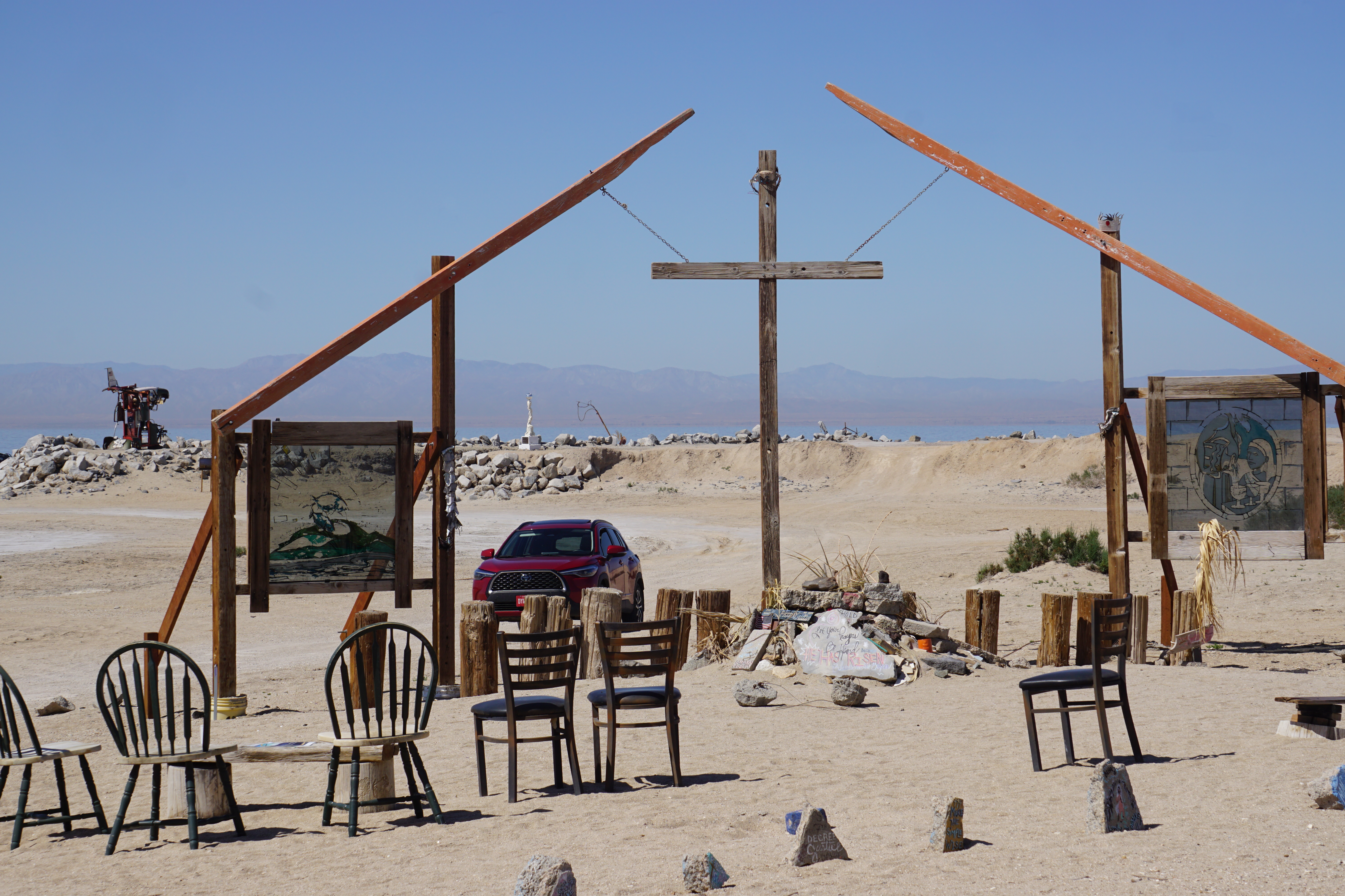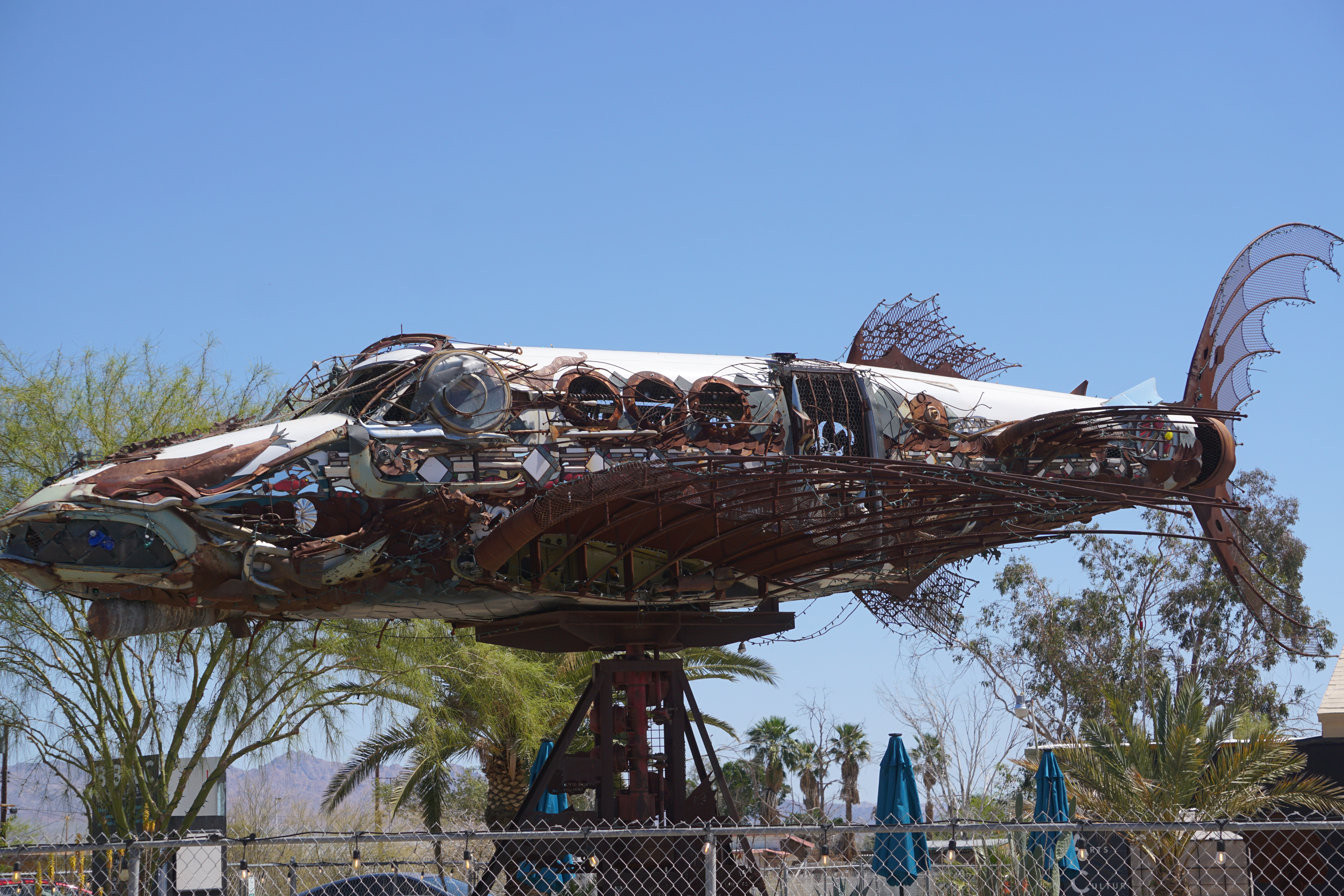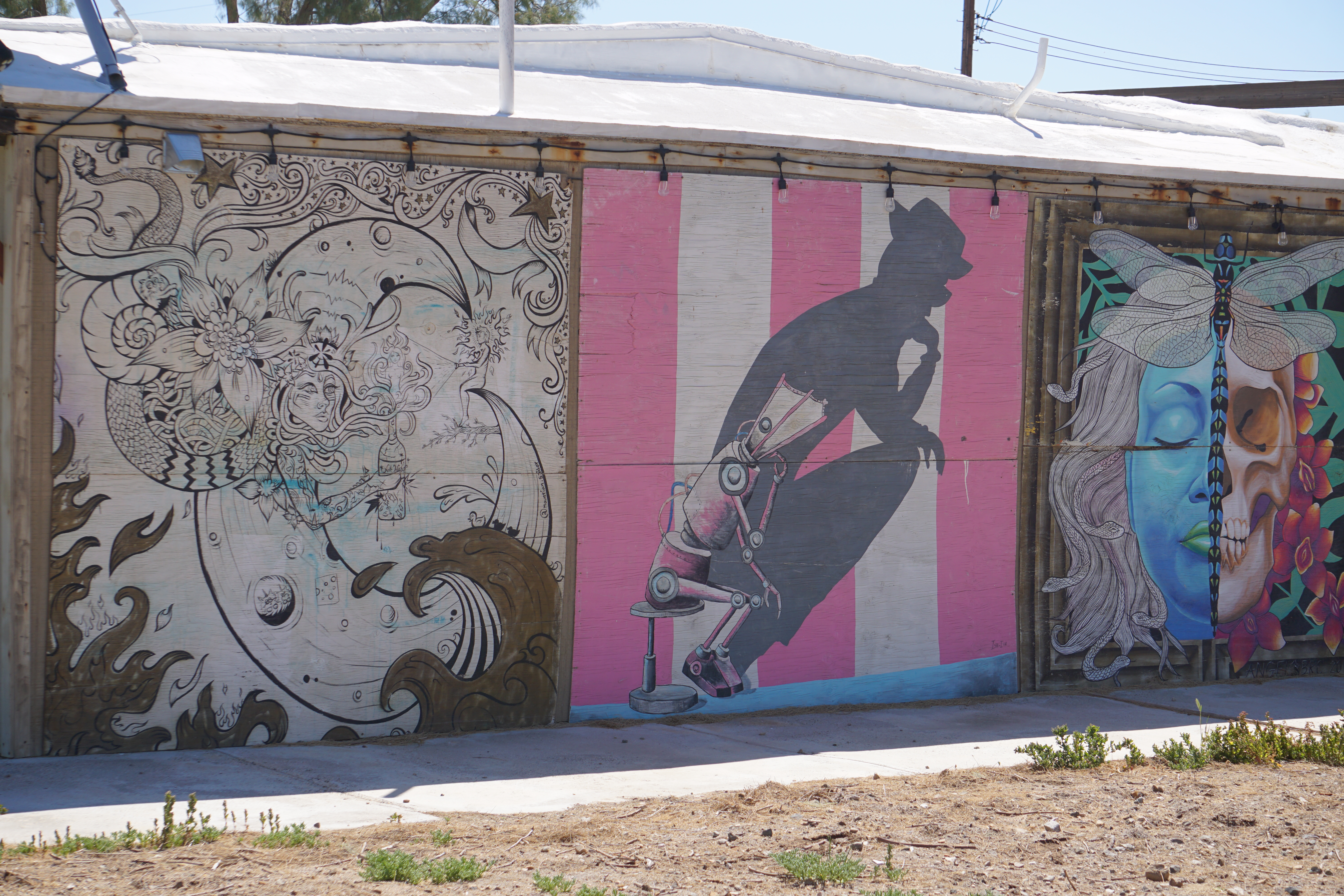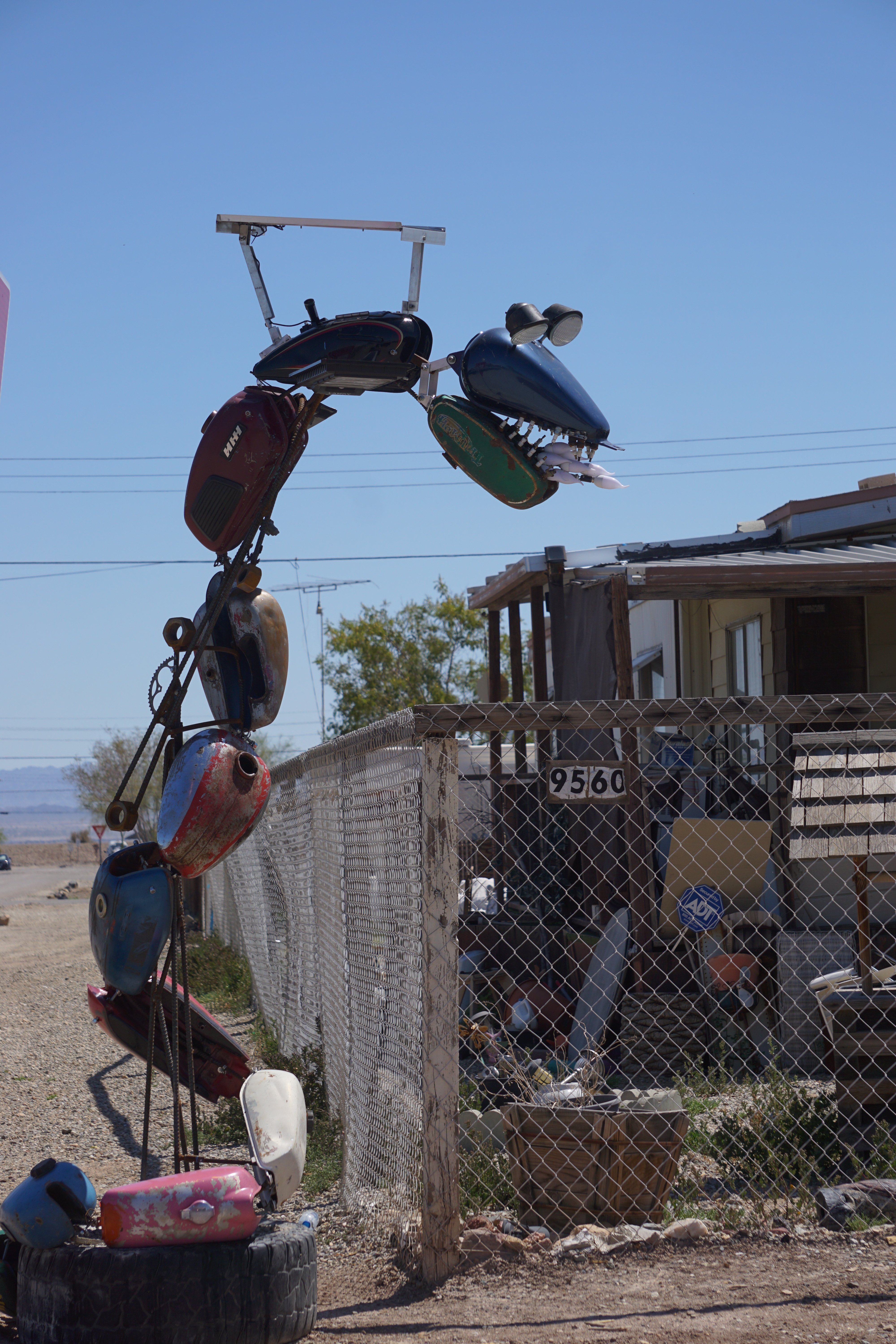 On day three in the desert I made the trek around the Salton Sea to Bombay Beach. This is another area that has something new every time I go through. In the 50’s this was a popular beach destination just outside of Palm Springs. That heyday is long gone but in 2016 the remaining community started inviting artists, writers, and filmmakers to create works and “stage happenings” and the town and beach area are now full of larger than life art installations.